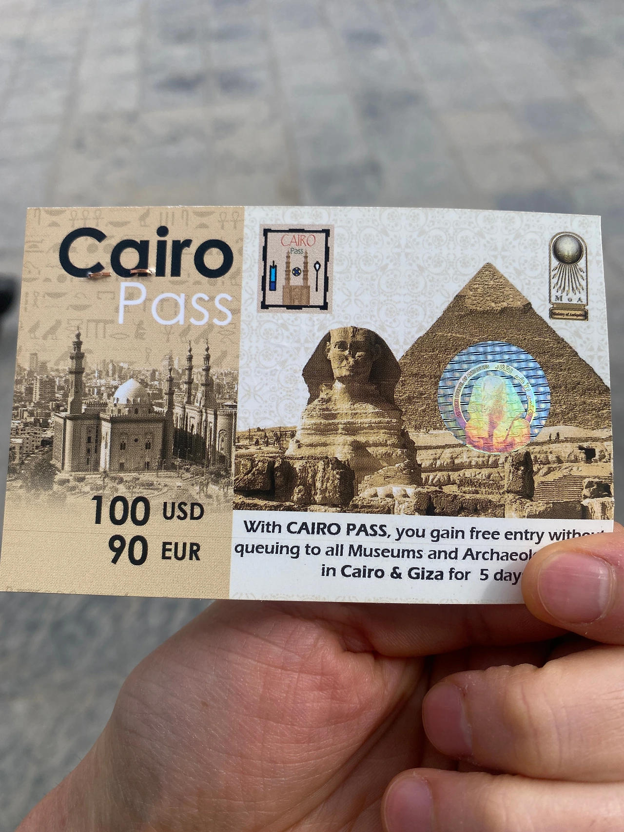 석상 같은 유물들도 좋지만 나는 무엇보다 미라가 보고 싶었다. 카이로 박물관에는 미라들이 연말에 오픈 예정인 그랜드 뮤지엄이라는 곳으로 다 이사 가고 딱 둘만 남아 있었다. 이름은 유야와 튜야. 부부라고 한다. 유야는 이집트 재상이었고, DNA 검사 결과 그 유명한 투탕카멘의 증조부였음이 밝혀졌다고 한다. 무엇보다 그에게는 풍성한 머리털이 있었다. 나도 이제 나이가 있다 보니 미라에게 부러움을 느꼈다. 귀국하면 모발관리에 총력을 다 할 것을 맹세했다. 투탕카멘 왕의 황금 마스크는 워낙 유명하다 보니 따로 전시실이 있었다. 거기서는 관리인들이 절대 사진을 못 찍게 했다. 실제로 보면 구글에 쳐서 나오는 사진이랑 똑같이 생겼으니 굳이 찍을 필요는 없어 보였다. 그럼에도 어떤 아저씨가 사진을 찍었다. 관리인이 야수처럼 달려들어 그의 휴대폰을 압수해 사진을 지워버렸다.. 하여간 어느 나라나 아저씨들이 말을 제일 안 듣는다. 나는 말 잘 듣는 아저씨가 되어야겠다는 생각을 했다. 허기가 느껴져서 시간을 보니 벌써 한시였다. 별로 본거 같지도 않은데 벌써 두 시간이 흘렀다. 오늘 기자 대피라미드까지 보기로 마음먹었으니 이제 슬슬 점심을 먹고 이동을 해야 했다. 여권을 맡겨 둔 사무실로 갔다. 직원 아주머니는 나를 반갑게 맞이하며 방금 카이로 패스 담당자가 왔다고 했다. 그럼 그렇지. 싸한 느낌은 절대 틀리지 않는다. 여권을 맡기고 들어가기로 한 나의 재빠른 판단을 셀프 칭찬하였다. 드디어 카이로 패스가 내 손에 들어왔다.
