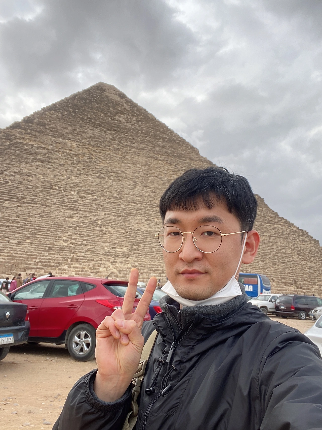 길에서 양고기 샌드위치를 뜯으며 대피라미드까지 가는 길을 검색했다. 대피라미드는 카이로에서 나일강을 건너면 나오는 도시인 기자에 있다. 도시 이름이 달라지긴 하지만 서울 강남과 강북의 관계라고 보면 된다. 그곳까지 지도상으로는 17킬로미터쯤 떨어져 있었다. 우버를 타면 100파운드, 우리 돈으로 7500원 정도에 해결 가능했지만 나는 대중교통을 이용하고 싶었다. 경찰을 붙잡고 말끝마다 ‘Sir’를 붙여가며 피라미드 가는 버스는 어디서 타는지를 물었다. 경찰은 길 건너편의 미니버스정류장에 가서 물어보라고 했다. 미니버스는 하얀색 승합차인데 이집트에서 가장 대중적인 교통수단이고, 당연히 행선지, 노선도 따위는 적혀있지 않다. 미니버스 기사가 행선지를 목놓아 외치는 것을 듣고 알아서 잡아 타는 시스템이다. 나중에야 익숙해져서 잘 타고 다녔지만 당시에는 어떻게 타야 하는지 인터넷의 후기를 아무리 봐도 전혀 감이 오지 않았다. 일단은 아무 버스나 붙잡고 기자 피라미드 가냐고 물었다. 다들 나를 무시하고 지나갔다. 나는 아랍어를, 그곳 사람들은 영어를 전혀 못한다. 물어보고 싶어도 물어볼 수 있는 사람도 없었다. 한 20분을 그러고 있다가 포기하고 우버를 타기로 마음먹은 순간 미니버스 한 대가 내 앞에 서더니 타라고 했다. 일단 탔다. 기사님이 영어를 조금 할 줄 알았다. 어디로 가냐고 묻길래 기자 피라미드를 가고 싶다고 했다. 그 말을 들은 기사님은 어제 공항버스 탈 때와 마찬가지로 승객들과 설전을 주고받기 시작했다. 차를 길 한복판에 세워둔 채. 뒤에서 막 빵빵거리고 난리도 아니었다. 경찰도 와서 빨리 차 빼라고 닦달했다. 이래도 되는 걸까 불안해졌다. 기사님에게 ‘나 그냥 택시 타고 갈게’라고 이야기했더니 ‘택시기사들은 다 거짓말쟁이들이야 조금만 기다려 봐’라고 하며 승객들과 설전을 계속했다. 버스가 출발했다. 드디어 결론이 난 듯했다. 한 2 킬로미터쯤 달리다가 버스가 멈췄다. 기사님이 어딘가를 가리키며 저기 가서 버스를 갈아타라고 했다. 그곳에는 미니버스보다 큰 노선버스들이 모여있는 환승센터 같은 곳이 있었다. 버스비를 내려고 했지만 그는 받지 않았다. 나는 슈크란(감사합니다)을 목놓아 외쳤고, 그 기사님은 자신의 오른손을 왼쪽 가슴에 대는 멋있는 포즈를 하며 이집트에 온 것을 환영한다고 했다.