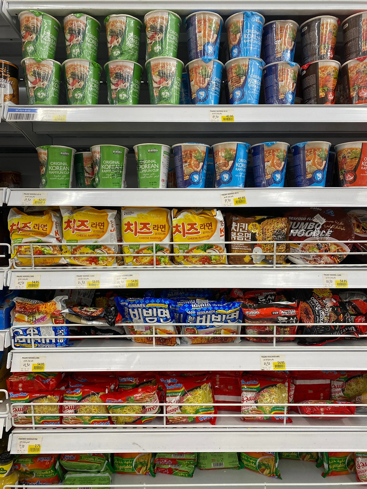 저녁 즈음에는 우버를 불러서 알산에서 제일 큰 쇼핑몰에 갔다. 쇼핑몰 이름은 'City Centre Alexandria'다. 나는 시장이랑 쇼핑몰을 가는걸 참 좋아한다. 시장은 지겹도록 봤으니까 쇼핑몰엘 한번 가 보고 싶었다. 지도상으론 가까워서 걸어갈만해 보였는데 꽤나 멀리 있었다. 사실 쇼핑몰은 어디나 비슷하다. H&M 같은 SPA 브랜드가 있고, 올리브영 같은 종합 화장품 매장이 있고, 대형 마트가 있다. 하지만 나라마다 사람들의 취향이 다 다르니 디테일을 보는 재미가 있다. 알산의 H&M에는 유난히 컬러풀해 보이는 옷이 많았다. 참 신기한 게 비교적 덜 개방적인 나라로 갈수록 파는 옷의 색깔은 컬러풀해진다. 이쪽저쪽 돌아보다 보니 대형 까르푸 매장이 있었다. 역시 대형마트에는 별거를 다 판다. 이런데 가면 괜히 한국 물건은 뭘 팔고 있나 찾아보게 된다. 외국에서 한국산 제품을 만나면 괜히 반갑더라. 알산 까르푸에서는 라면 코너에서 팔고 있는 팔도 왕뚜껑을 발견했다. 내가 제일 좋아하는 음식은 라면이다. 평생 하나의 음식만 먹을 수 있다면 라면을 꼽는다. 이성을 잃고 하나 집어 들었는데 가격표를 보고는 냉정함을 되찾았다. 한국 돈으로 무려 4300원이다. 그래도 어쩌겠나 먹어야지. 내가 이집트에 온 지 6일째 아직 바가지 한번 안 썼고 삐끼들한테 당하지도 않았건만 결국 이렇게 한국 라면에 뒤집어쓴다. 옛말 틀린 거 하나 없다. 어딜 가도 한국 놈들을 제일 조심해야 한다.