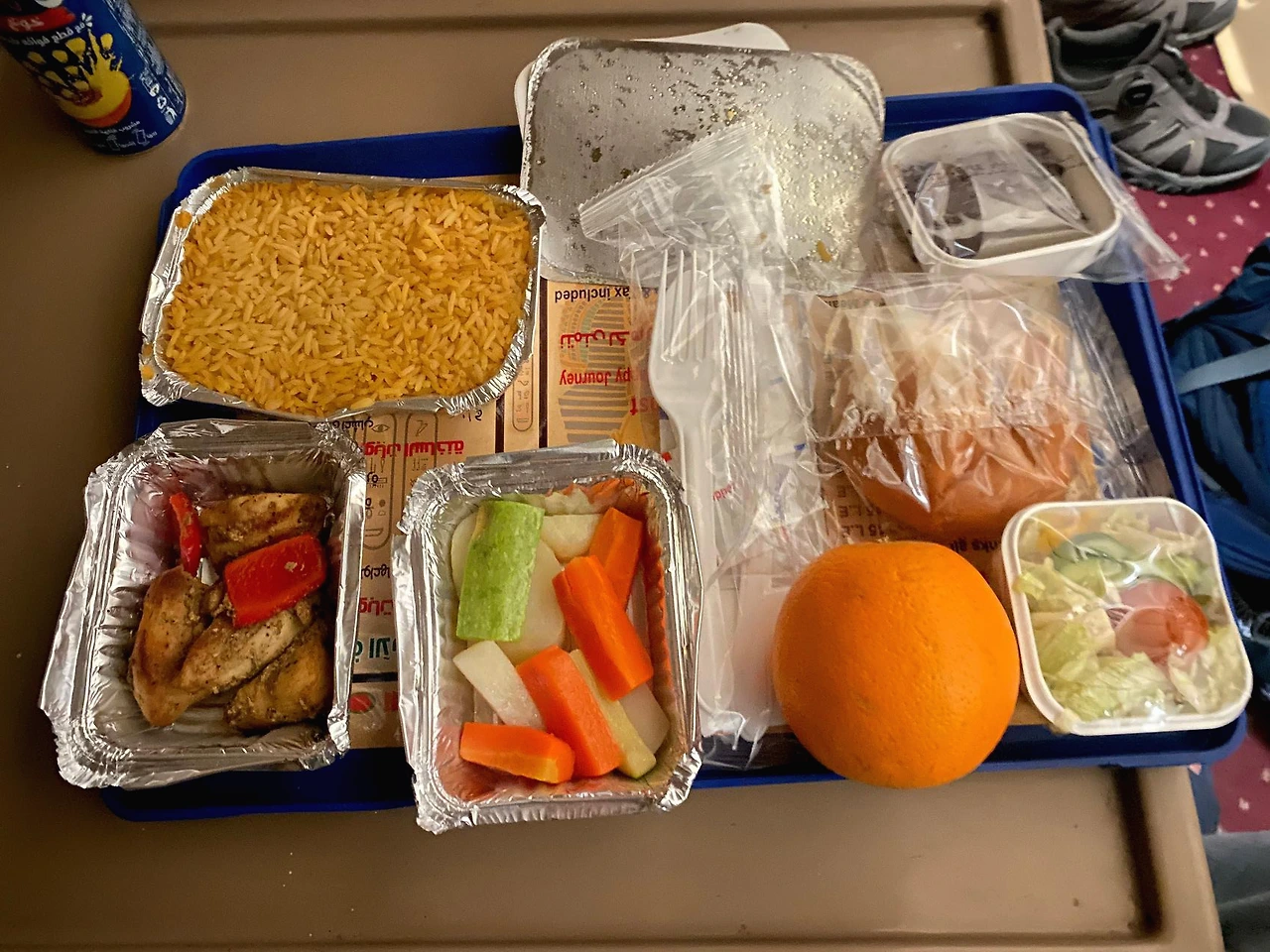 누군가 문을 노크했다. 문을 열었더니 아까 그 표검사 하던 양복입은 아저씨가 있었다. 손에는 차내식이 들려 있었다. 음료는 뭐로 하겠냐는 물음에 오렌지쥬스를 달라고 했고, 식사 서빙이 다 끝나고 가져다 주겠다고 했다. 침대차의 차내식은 푸짐하고 맛있었다. 저녁을 못먹어서 더 맛있게 느껴졌는데, 향신료를 넣어 만든 황갈색 볶음밥이 내 취향이었다. 이집트에 오면서 기내식으로 나온 볶음밥도, 전날 알산의 해산물 식당에서 시킨 볶음밥에도 늘 이 맛이 났다. 무슨 향신료를 넣는걸까? 다음에 꼭 물어봐서 한국에 사가야겠다. 한참 밥을 먹고 있는데 다시 노크소리가 들렸다. 아까의 그 양복아저씨였다. 오렌지쥬스를 따서 나에게 건네주었다. 감사의 인사를 했다. 그는 20파운드라고 했다. 뭐? 20파운드? 아까 무료로 제공되는듯한 뉘앙스로 이야기를 하더니? 와.. 거기다 유료라는 사실을 알고 내가 안먹을수도 있으니 따서 주는 저 치밀함!! 내가 순진했다. 이곳에서는 내가 시킨거 외에 추가로 뭐가 나온다면 얼만지부터 물어봐야한다는 사실을 깜빡했다. 그래도 어쩌겠나. 지금 와서 안먹는다고 싸울수도 없고. 나는 일부러 지갑을 어디다 뒀더라 하며 뭉그적대는 소심한 복수를 하며 20파운드를 줬다. 하여간 이놈의 이집트에선 잠시도 마음을 놓을수가 없다.