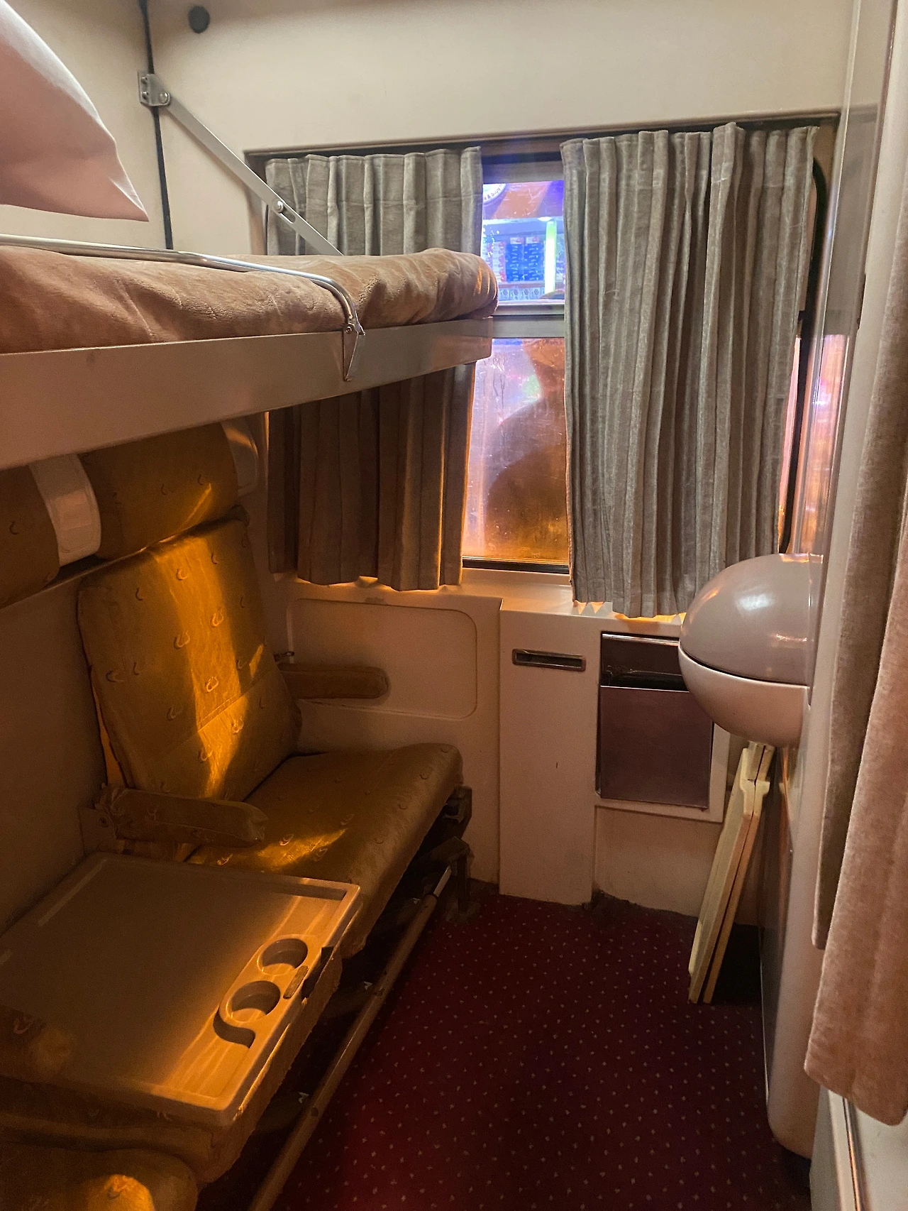 이집트의 침대열차의 내부는 한쪽 창으로는 복도가 있고 반대편으로 방이 주욱 배치되어 있는 구조였다. 각 방에는 침대가 2층으로 두개씩 있었고, 안에는 세면대도 있었다. 내가 여행다니며 타 본 그 어떤 침대차보다 시설이 좋았다. 세상에 이집트에서 이런 호사를 누리게 될줄이야. 1인실 120달러라는 가격이 아깝지 않았다. 창 밖에는 여전히 시끌벅적하고 혼란한 플랫폼의 풍경이 펼쳐져 있지만 이 안쪽은 그저 아늑한 나만의 공간이다. 다른 세상으로 워프해 온 듯한 희열을 느꼈다. 역시 돈이 좋다.