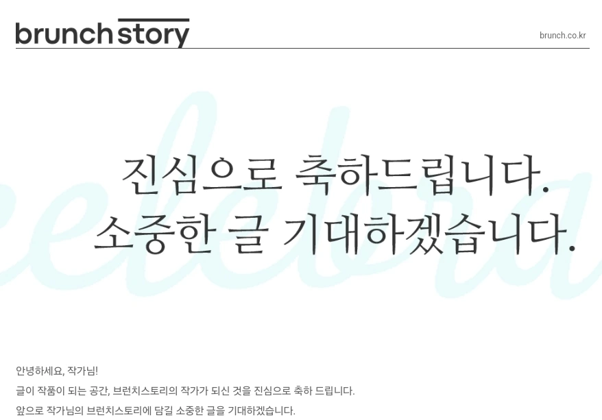 며칠 뒤, 브런치스토리 작가 승인 메일이 왔다.