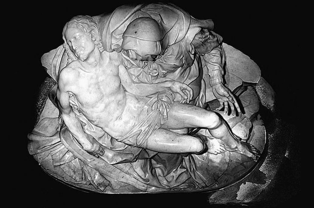 피에타를 본 사람들은 '성모가 너무 젊어 보인다', '아들이 죽었는데로 전혀 슬퍼보이지 않는다' 그리고, '주인공이 성모 아니야?' 하는 등 비난 일색이었다.