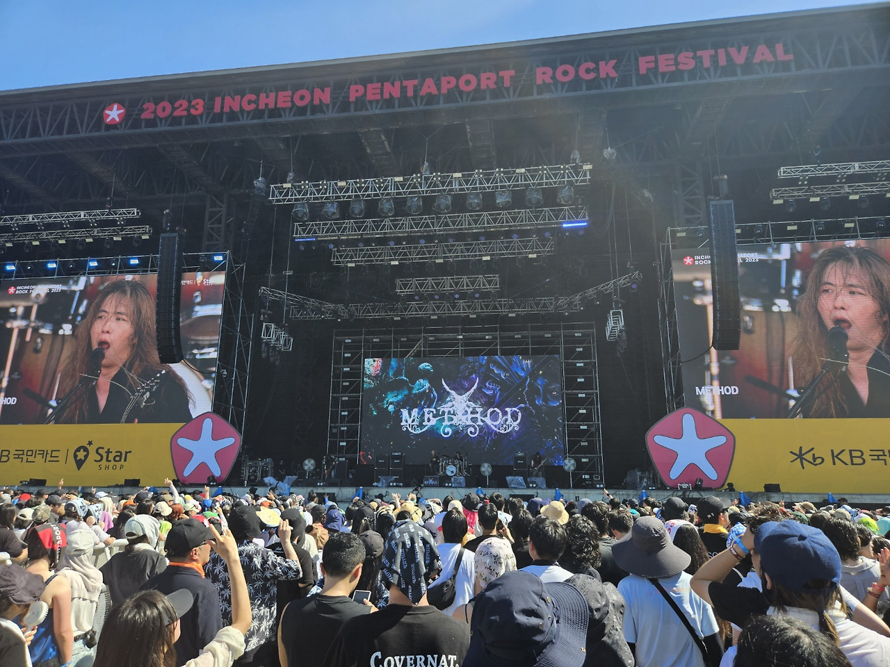 METHOD라는 메탈 밴드도 봤다. 사실 2023년, 대한민국에서 메탈 음악을 한다는 것은 매우 어려운 일이라고 생각한다. 음악이 좋아서 한다고는 하지만 생계를 생각한다면 메탈의 불모지인 한국에서는 정말 어렵지 않을까. 우리나라에서는 밴드 자체가 인기가 적은데 그중에서도 메탈이라니..그러나 이러한 인식과는 별개로 공연은 에너지 넘쳤다. 본인들이 하는 음악과 이렇게 찰떡이 될 수 있나 싶었다. 나는 슬램존에 있었는데 지금까지 경험했던 슬램 중 거의 최고가 아니었을까 싶다. "이게 락이지"라는 말이 절로 나왔다. METHOD는 본인들이 특성을 자신들의 음악에 그대로 투영한 느낌이었다. 그리고 이러한 에너지가 관객들에게 전해지고 이 에너지를 전달받은 관객들도 즐겁게 놀 수 있지 않았을까.