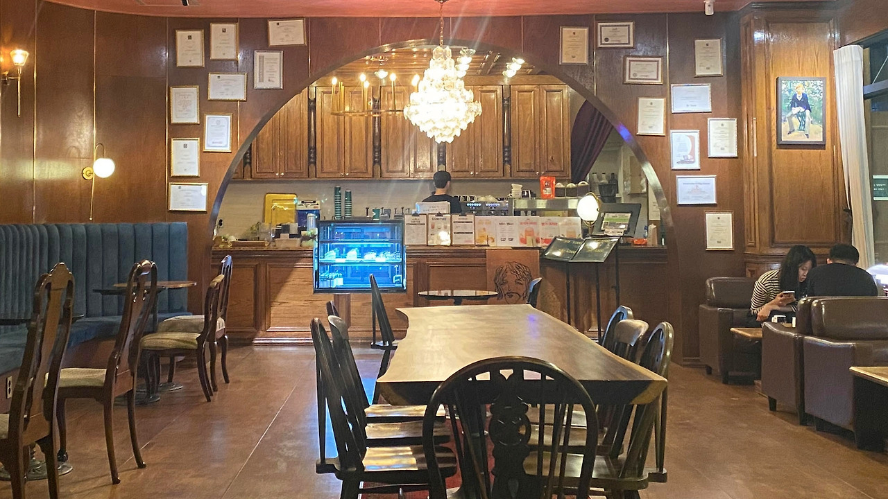 여성은 카페 구석에 위치한 편안한 소파를 정해 앉는다. 고풍스러운 테이블 위에 그보다 더 현대적인 조명이 자리를 밝히고 있다. 머지않아, 덩치가 크고 안경을 낀 남성이 회색 정장을 입고 카페에 들어선다. 여전히, 마스크를 쓰고 있는 여성은 들어온 남성을 향해 목례를 한다. 예의가 바른 여성은 적극적으로 남성을 환대하고 웃으며 인사를 건넨다.