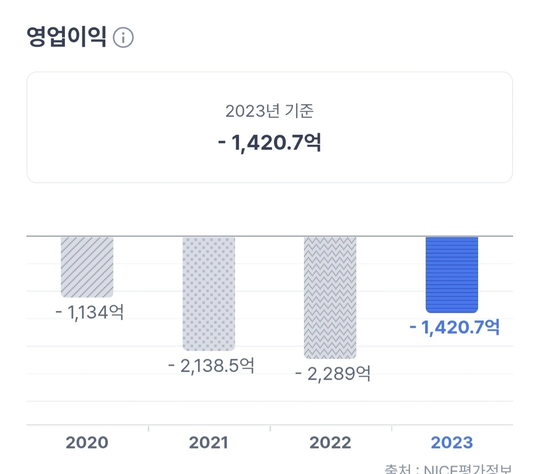 2022년엔 무려 2,200억 원대 손실이 났지.