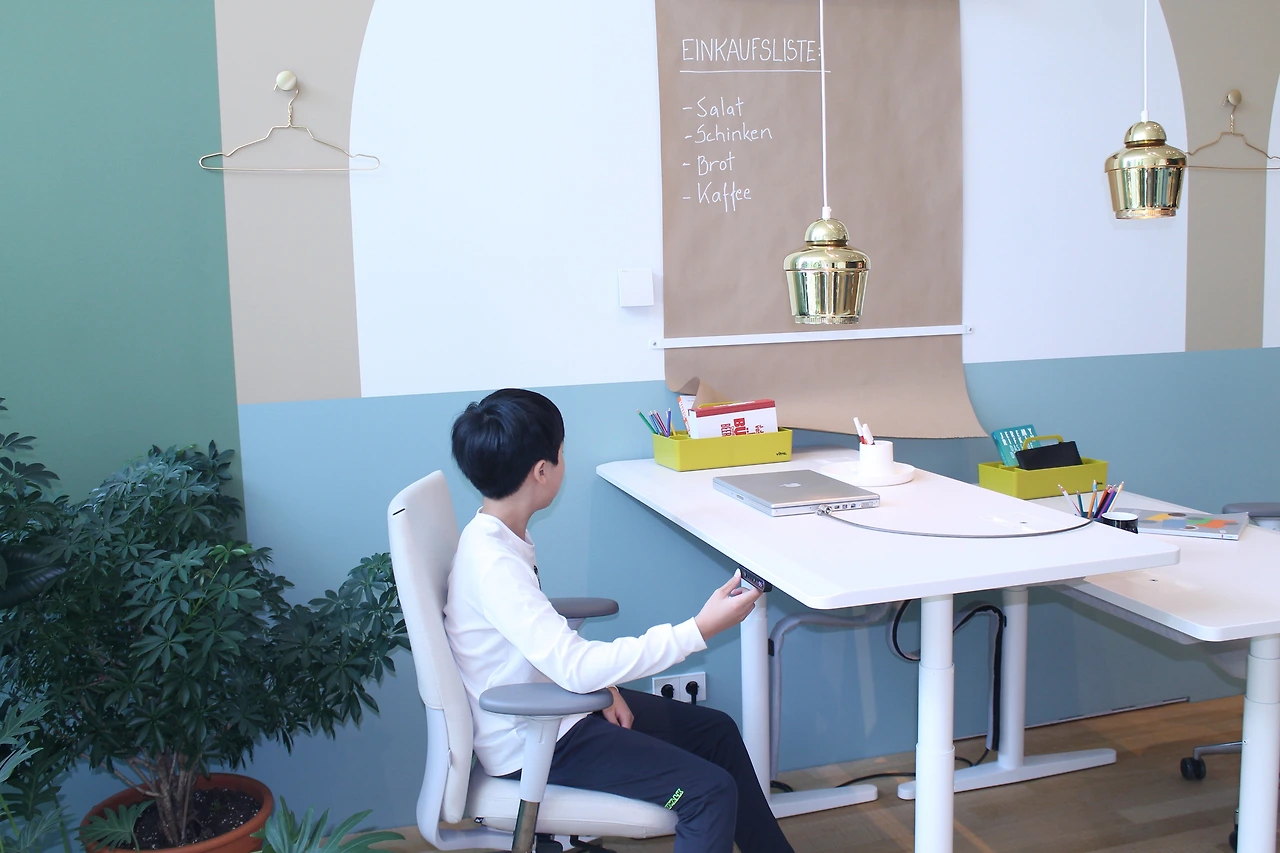(아이의 키에 따라 높이 조절이 가능한 책상, Height adjustable desk according to the child's height)