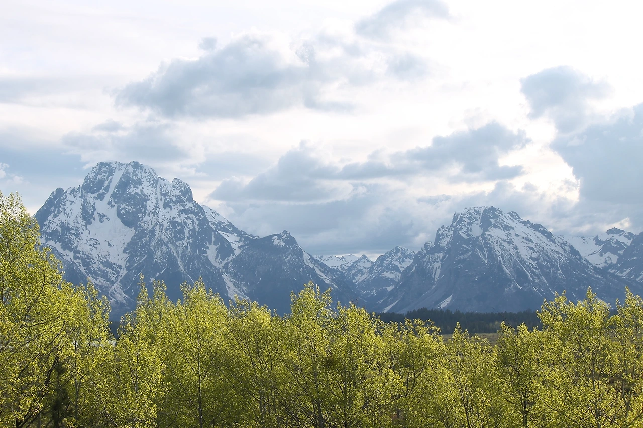 West Yellow Stone에서 2시간여를 더 달렸다. 옐로우스톤과 함께 와이오밍주의 최고 휴양지인 그랜드 티톤 국립공원을 지난다. 그랜드 티톤은 이틀 후에 방문하기로 하고 아쉽지만 오늘은 잭슨홀로 향했다. 이 부근은 로키산맥의 산간지대로 해발 1900미터로 5월이지만 아직 만년설이 봄기운을 맞은 초록의 수림들과 대비를 이루고 있었다.