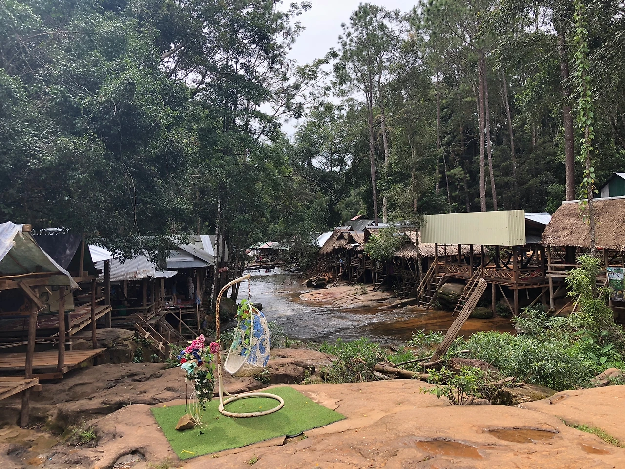 끼로롬 국립공원 내에는 여러 가지 구경거리가 많다. 물론 차량으로 이동해야 한다. 우선 현지인에게 인기가 높은 계곡의 리조트가 있다. 어릴적 고향 부산의 범어사 계곡의 모습이 스쳐지나간다.