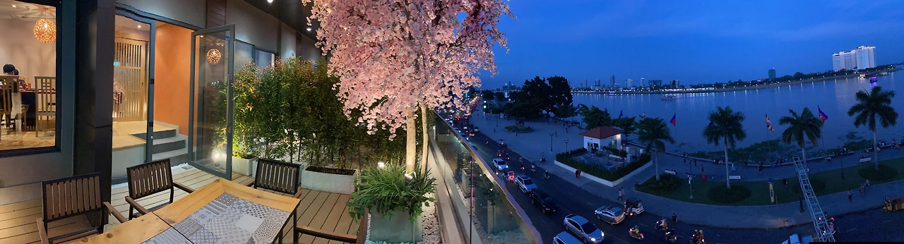 프놈펜 River Side에 위치한 일식당 - 인공 사쿠라가 아름답다