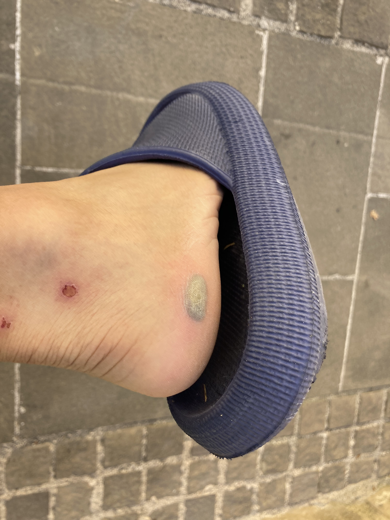 발을 확인해 보니 물집이 커지고 있었다. 오스카와 뛰다가 생긴 작은 물집인데 이렇게 커져버렸다. 검은색인 것을 보니 안에는 피가 차 있을 것이다. 내일 좀 천천히 걸어야 할 듯하다.