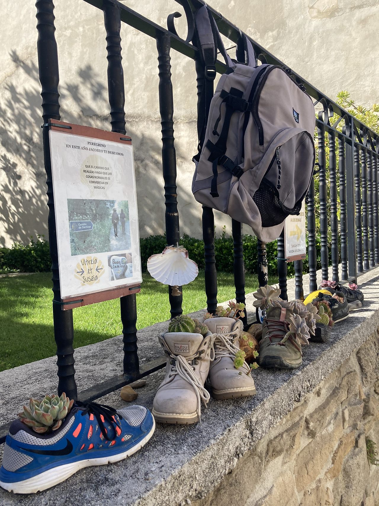 저 순례자 조형물에는 “바람의 길이 별의 길을 가로지르는 곳”이라 적혀 있다.