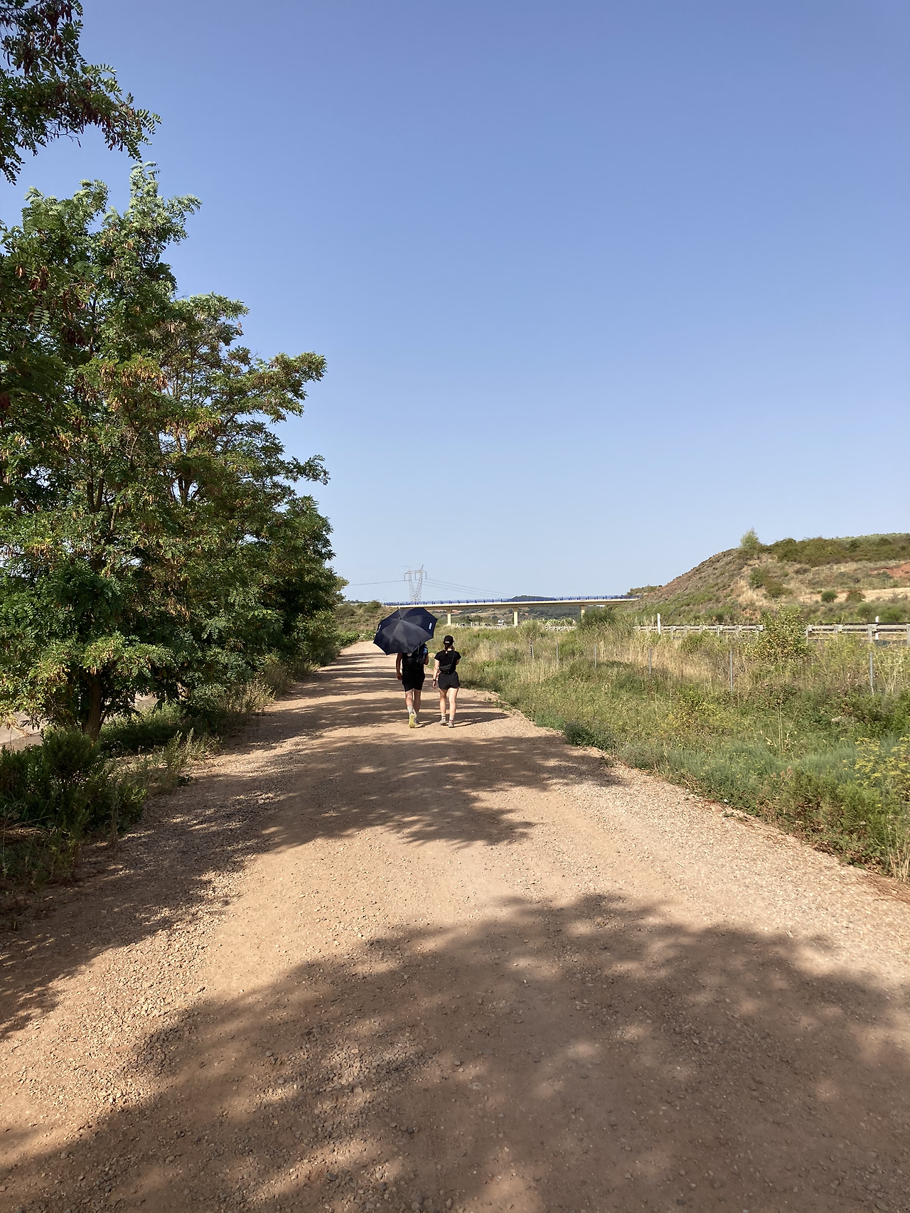 5시에 일어나서 준비했는데 이러저러하다 보니 5시 45분이 됐다. 알베르게를 나와서 걷다 보니 로그로뇨 외곽 즈음에서 조나의 뒷모습이 보였다. 여전히 손에 잡은 스틱이 너무 길었다. 잠시 멈추라 해서 스틱을 줄여주고 잠시 노르딕 워킹을 가르쳤다. 얘도 몸치인지 왼발과 왼팔이 같이 나온다.