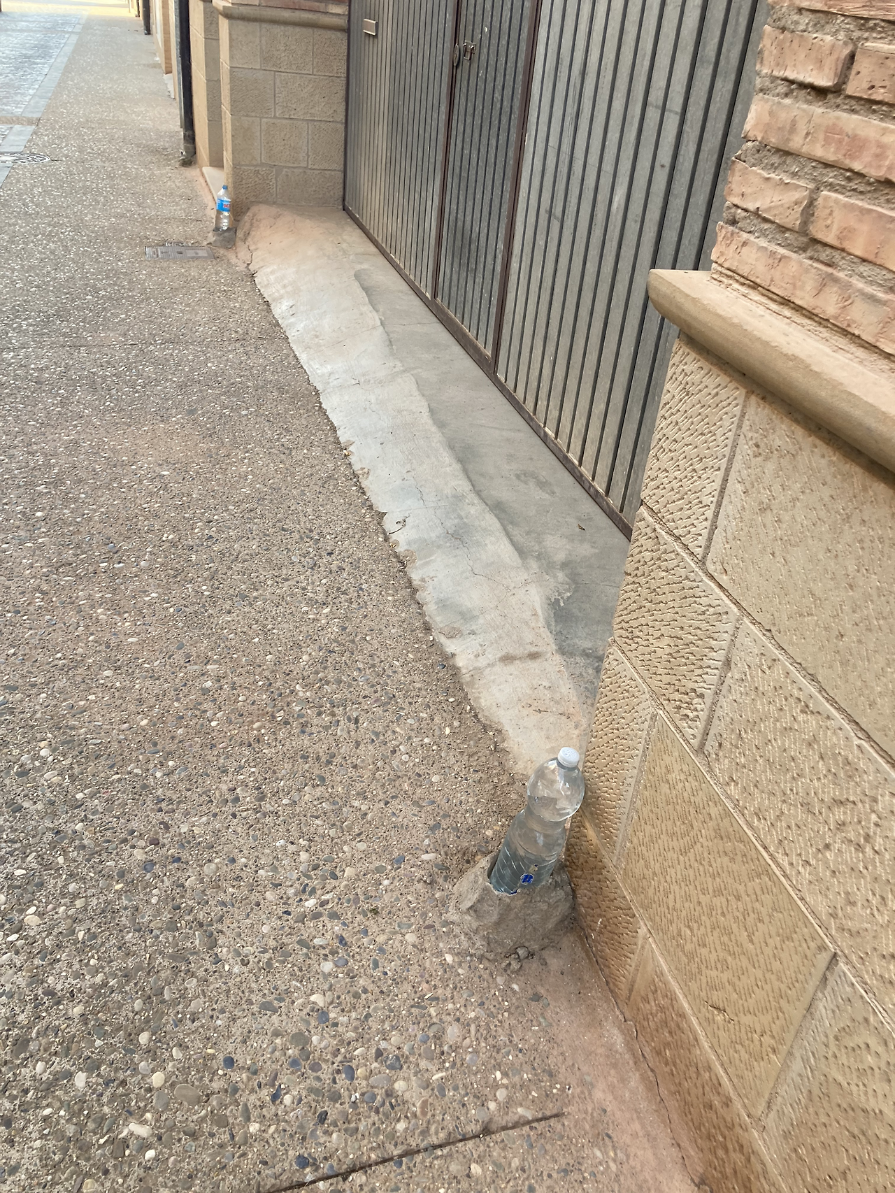이렇게 물병을 놓아두는 이유는 개가 문 앞에 오줌 싸는 것을 방지하기 위해서라고 한다. 정말 되는 건지 잘 모르겠다.