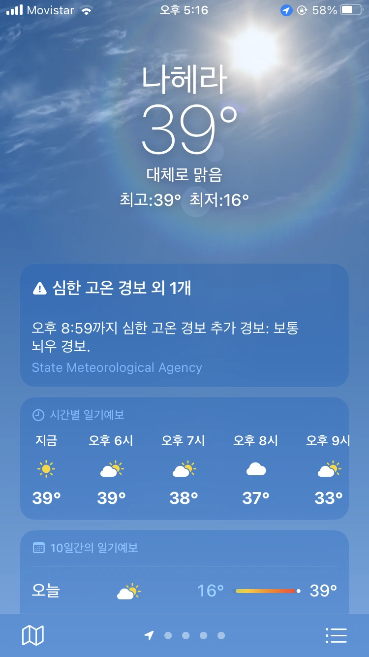 시에스타 시간이 지났어도 무시무시한 열기는 계속 나헤라를 달구고 있었다. 어차피 해가 떨어질 때까지 더울 것이기에 얼른 상점에 다녀와 쉬는 편이 낫다고 생각했다. 뒷산이 예뻐는 보였지만 이 날씨에 언덕에 올라갈 일은 언감생심이었다. 거리 구경을 하다 일사병인지 싶은 살짝 어지러운 느낌이 들었고 얼른 에어컨이 있는 슈퍼마켓에 들어갔다. 단백질을 보충해야겠어서 저렴한 서민음식 삼겹살을 집었다. 그리고 곁들일 와인을 꽤 좋은 것으로 골랐다. 알베르게로 돌아와 고기를 구워 저녁을 함께 먹었다. 이렇게 저렴한 돼지고기라니 스페인으로 이사 올까 싶은 마음이 들었다.