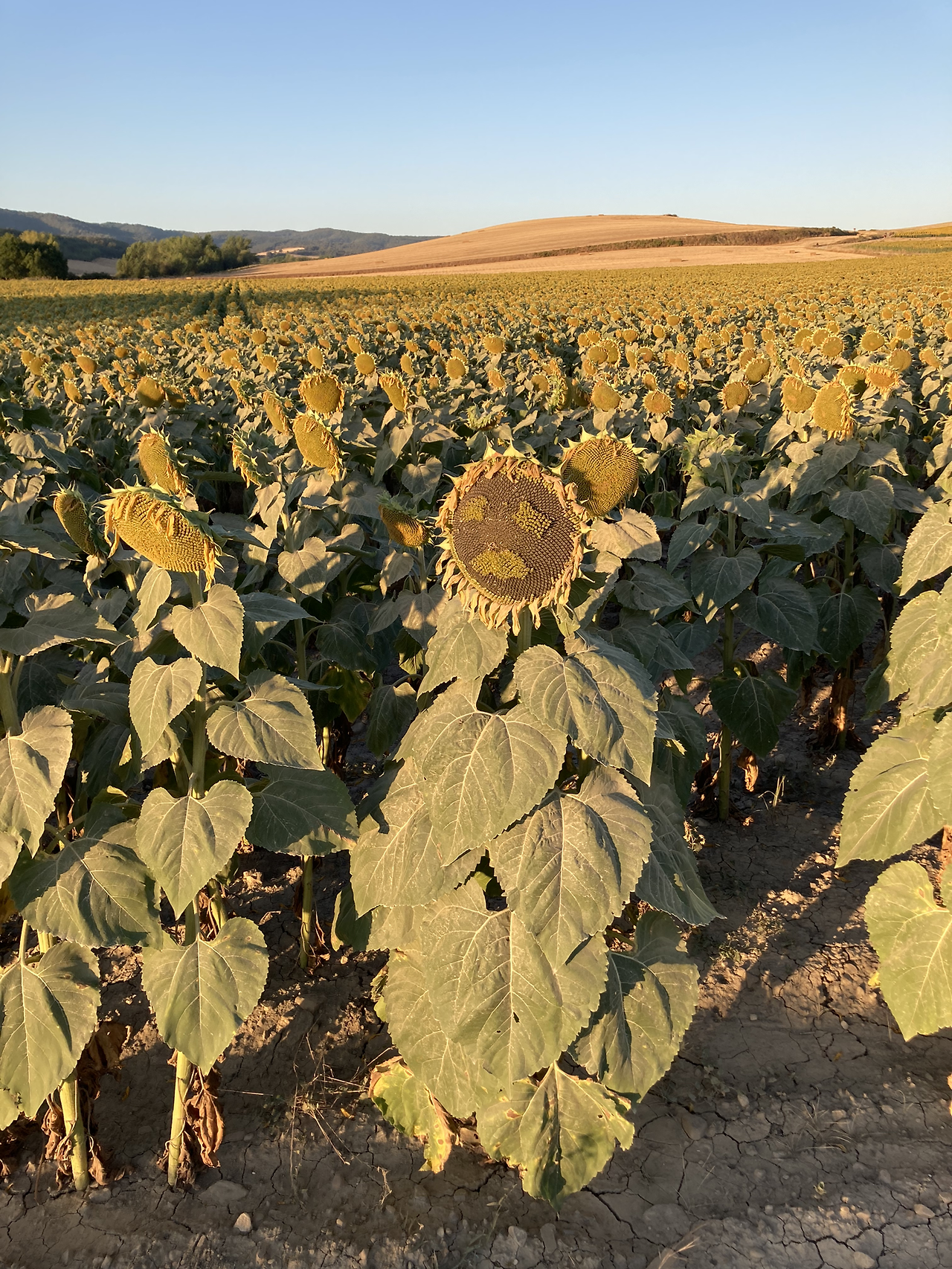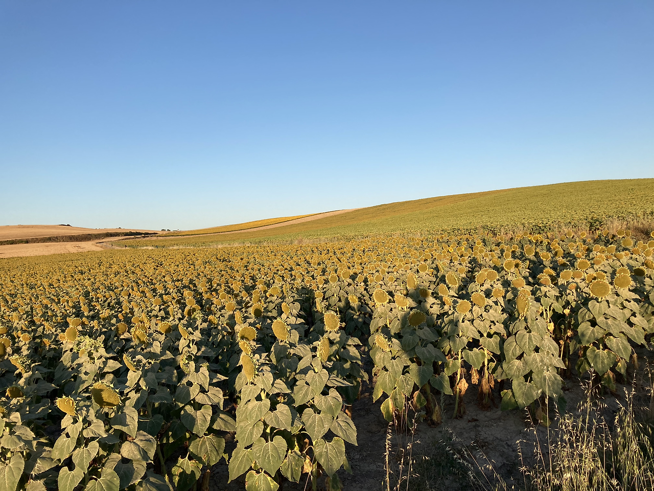 어제 칼사다 들어오기 직전에 보았던 해바라기 밭도 대단했지만, 이번엔 말 그대로 끝이 보이지 않을 정도의 황금물결이 아침 햇살을 받아 빛나고 있었다.