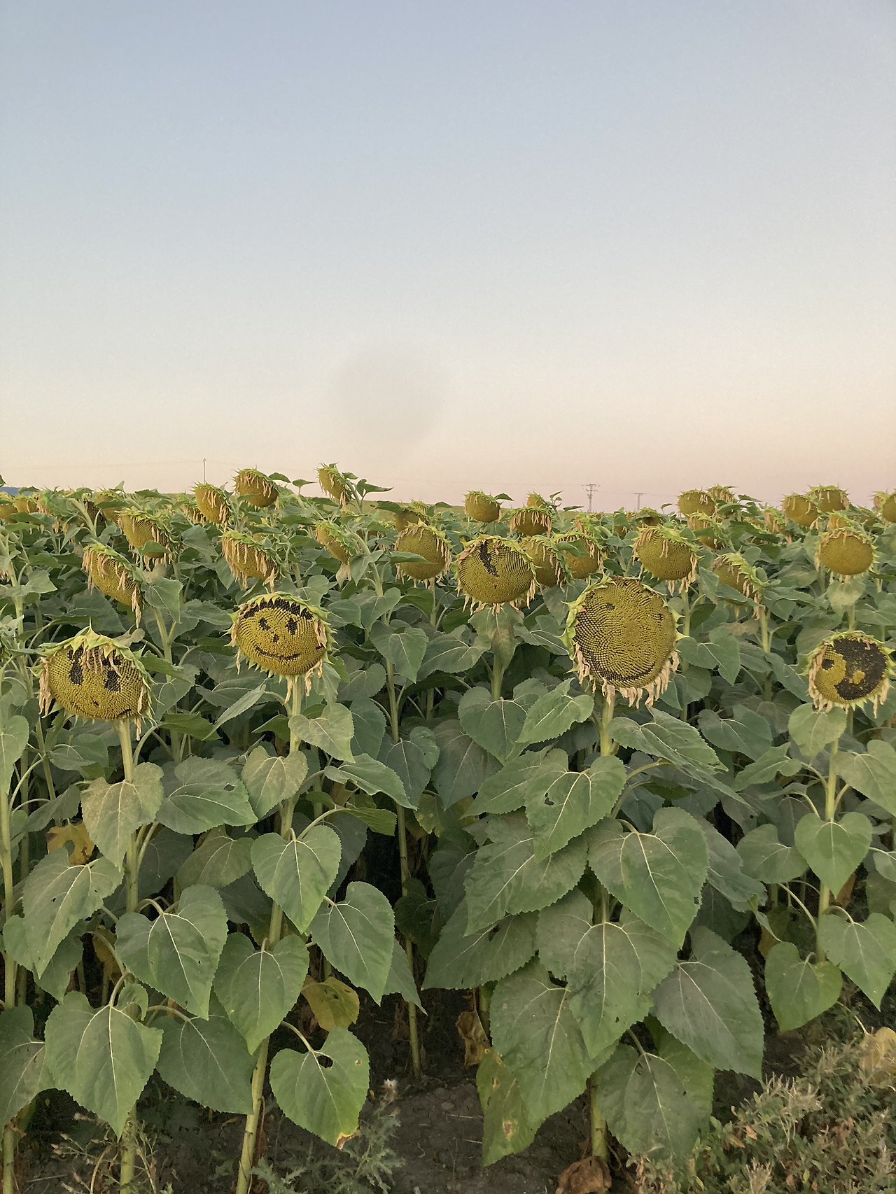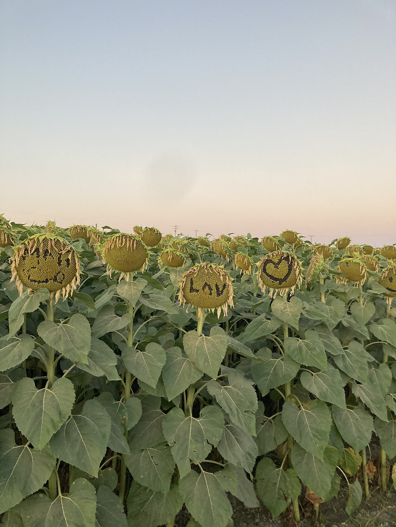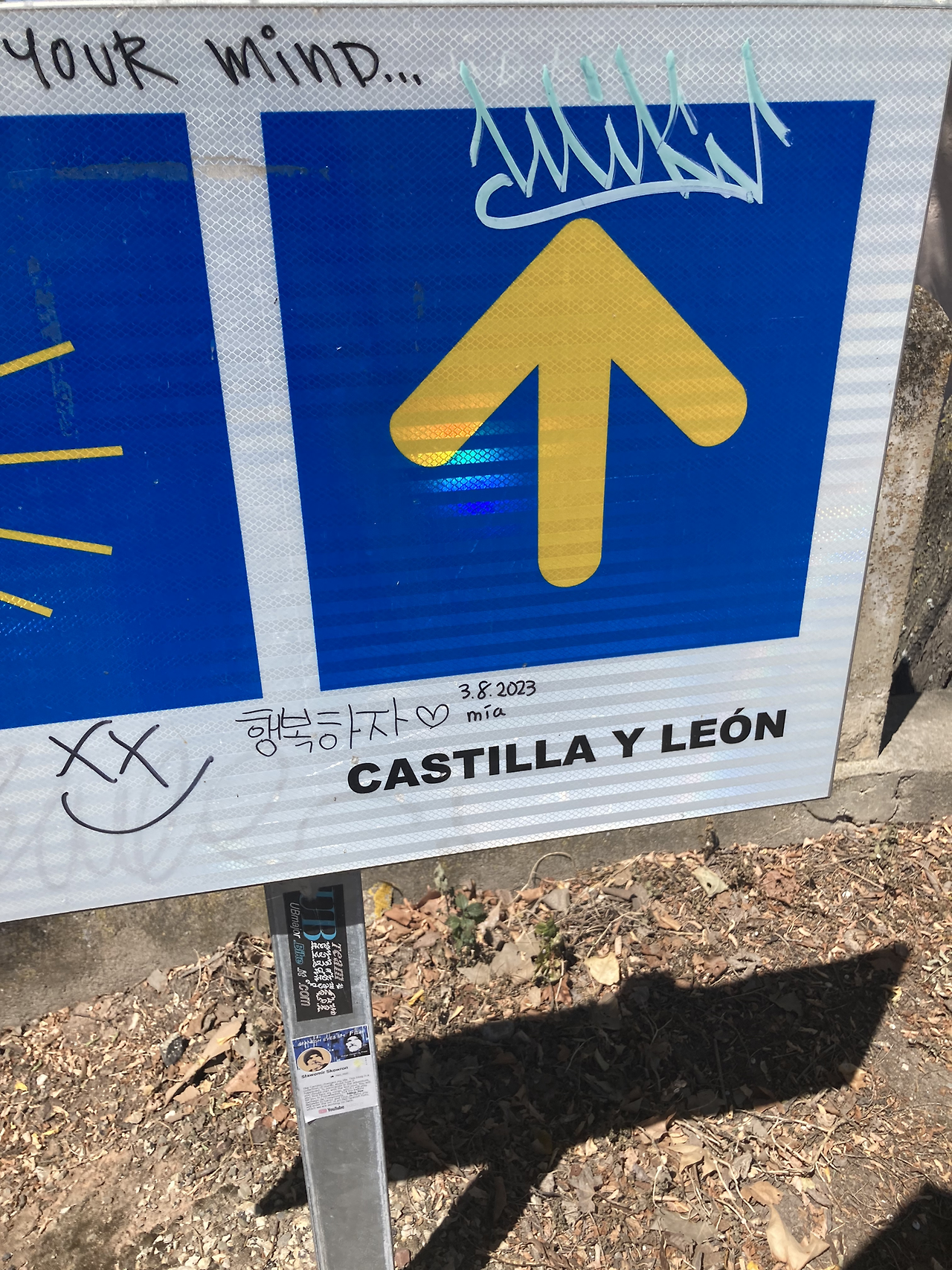 순례자들이 해바라기에 이것저것 그리며 장난을 쳐 놓았다. 늘어선 해바라기를 구경하며 잠시 힘든 줄 모르고 걸었다.