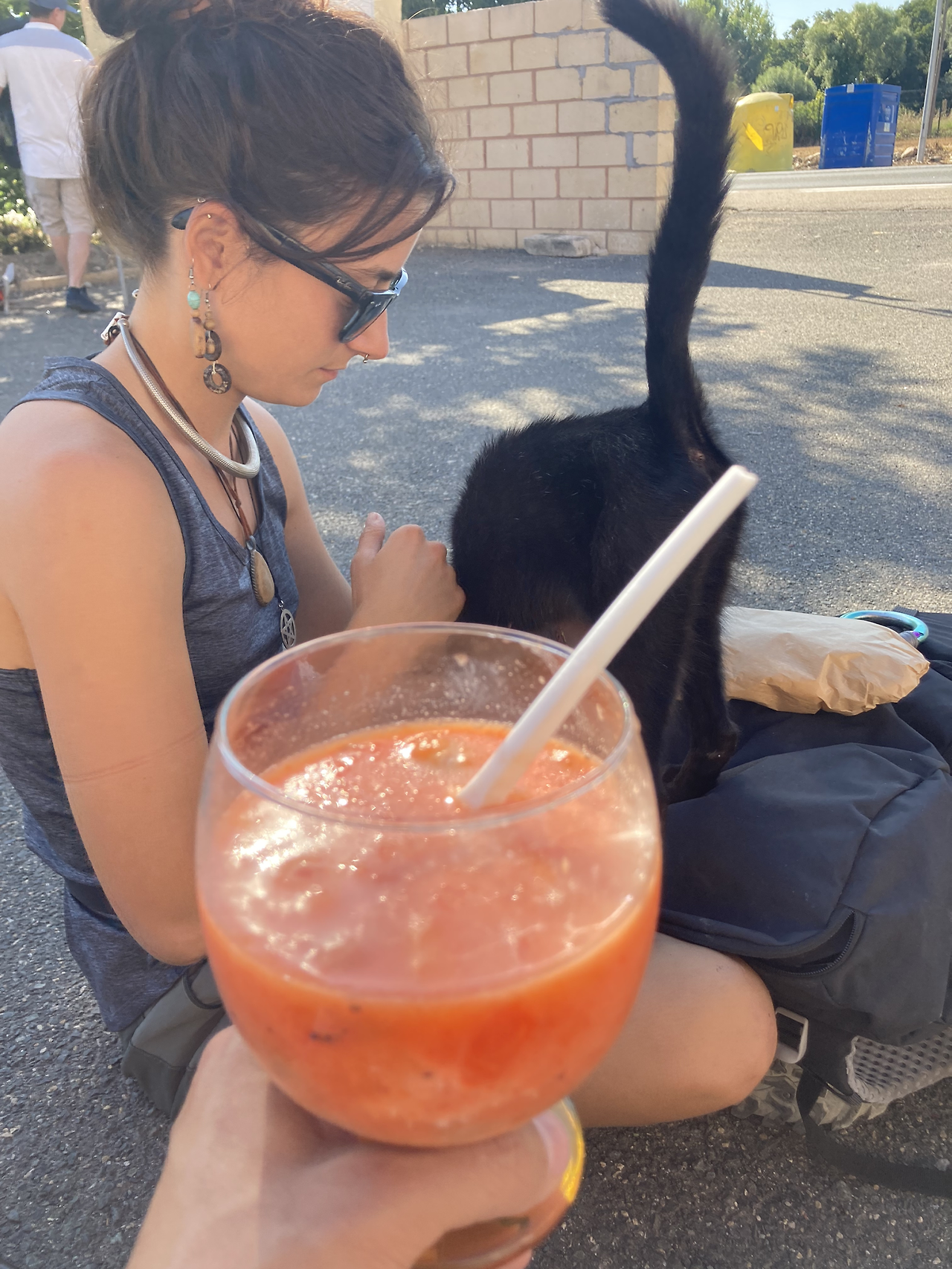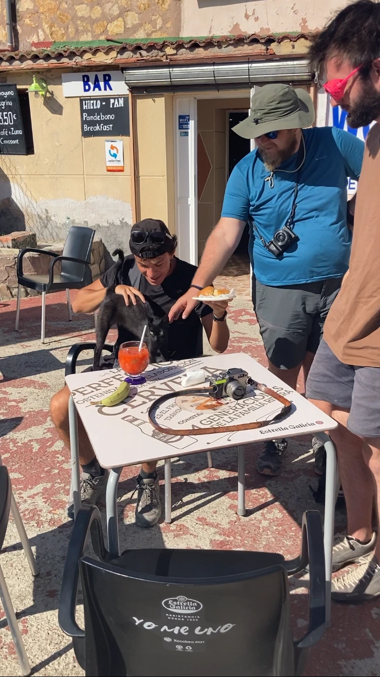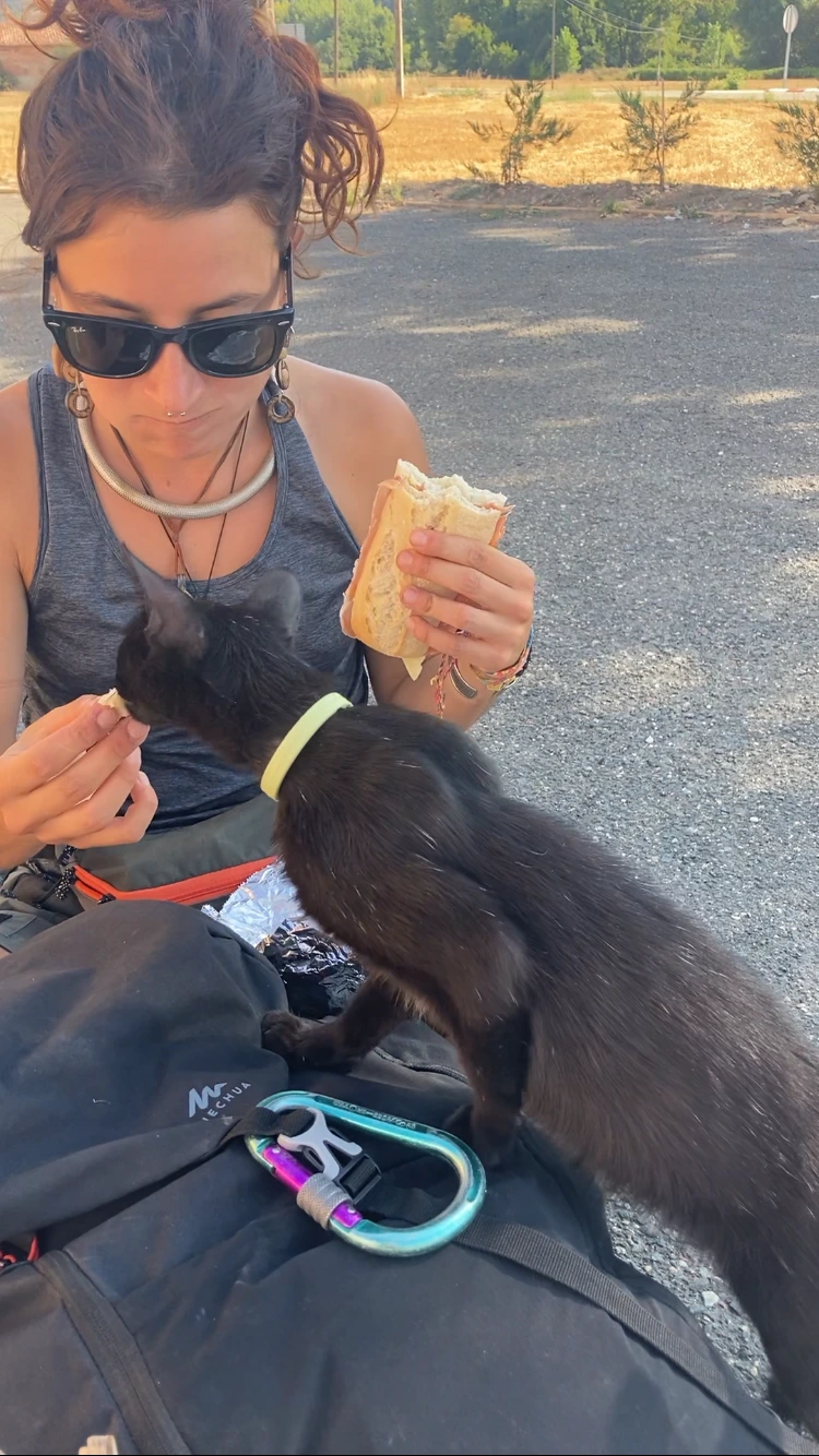 고양이가 이레네 Irene의 샌드위치 냄새를 맡은 모양이었다. 여기 사는 고양이는 순례자들의 마음을 홀딱 빼앗아 가버렸다. 햄 말고 빵도 잘 먹는 고양이다.