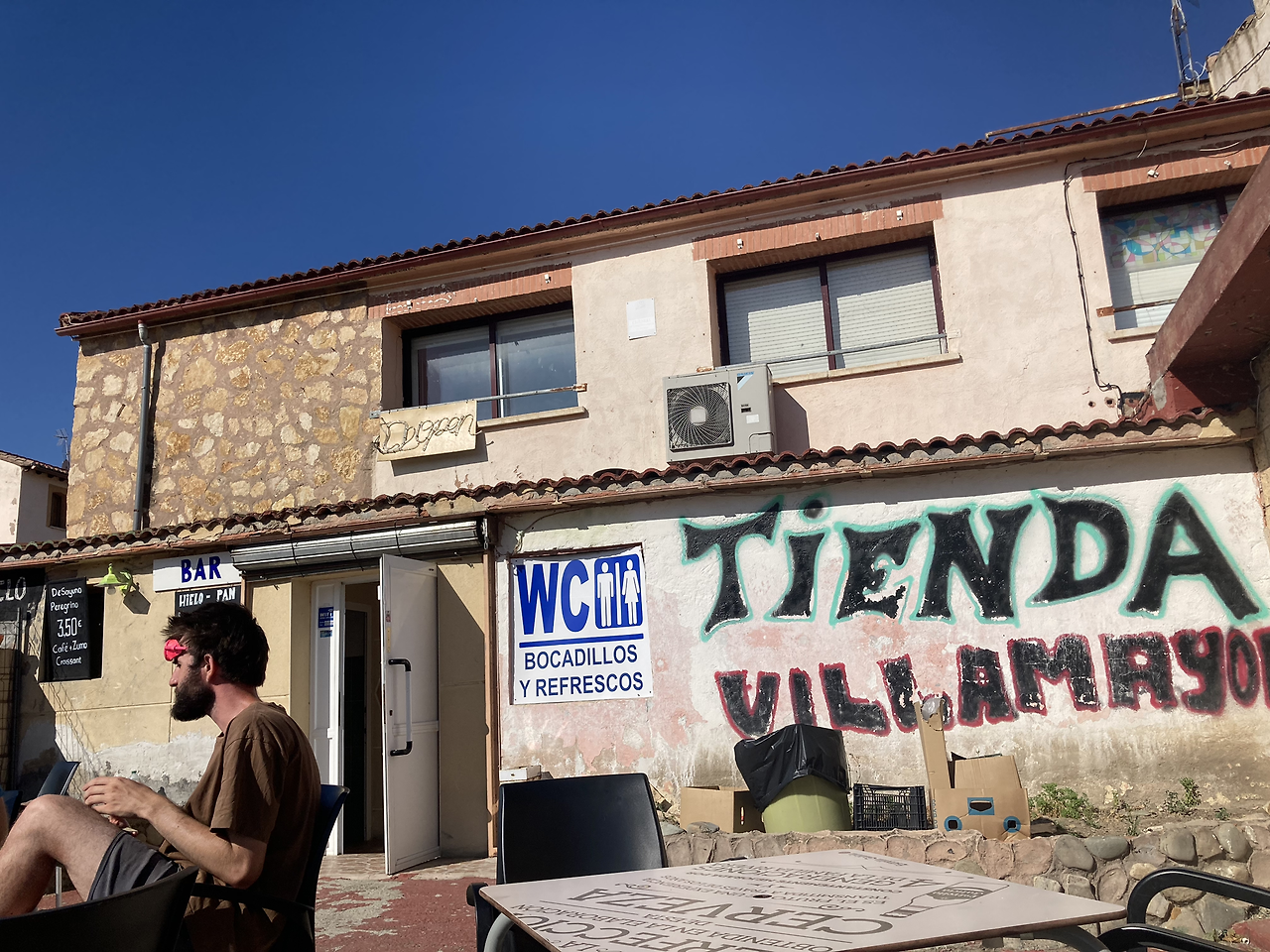 이때 키어런이 다음 마을에 괜찮은 기부제 알베가 있다고 들었다며 순식간에 사라져 버렸다. 갑자기 호기심이 동했다. 다음 마을이 어디인지 지도를 찾아보니 5km 떨어진 토산토스 Tosantos라는 마을이다. 궁금한데 겸사겸사 한마을 더 가볼까? 갈팡질팡 고민하는 사이 이미 12시 반이 넘어 해는 높게 떠올랐다.