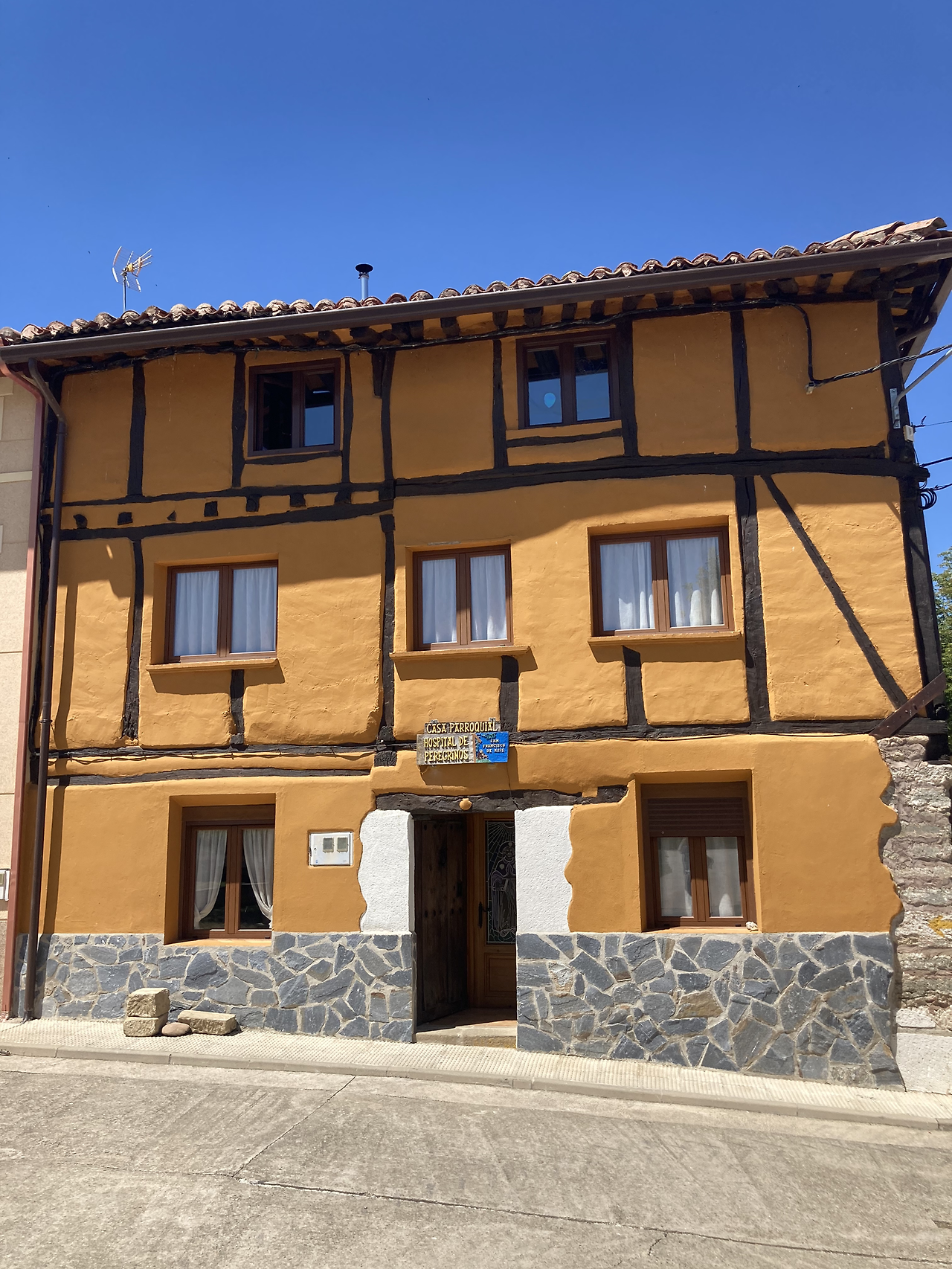 수영장이 있는 알베르게는 12시 30분에 문을 연다 하였기에 이미 문이 열려있는 기부제 알베르게 앞에서 잠시 머뭇거렸다. 헤쥐아니 부부는 여기 묵는다 했다. 알베르게 앞 의자에서 쉬는 동안 조나가 도착하여 기부제 알베르게로 들어갔다.