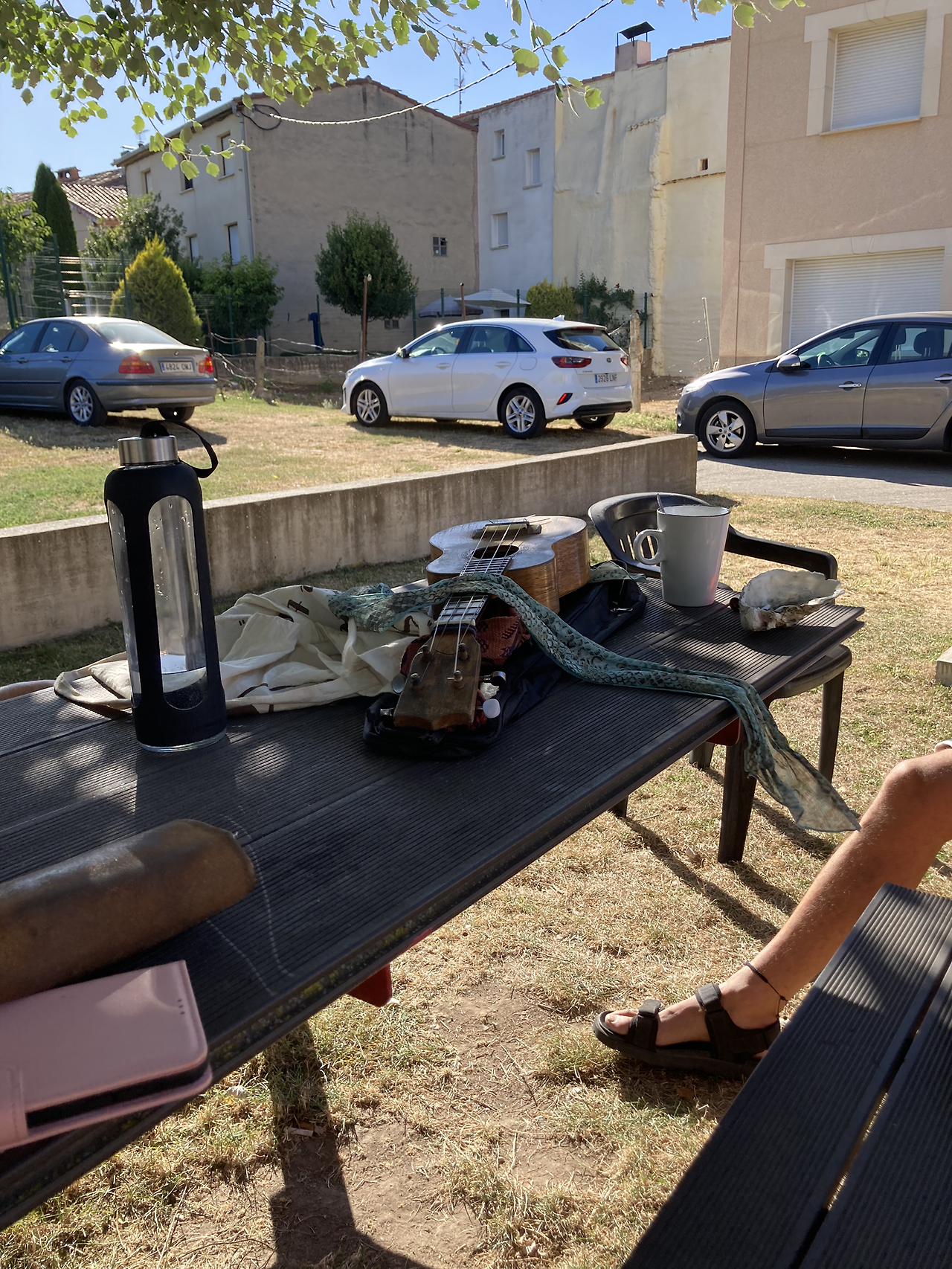 어디선가 악기 연주 소리가 들렸다. 마당 쉼터에 나가보니 누군가 우쿨렐레를 연주하고 있었다. 순간 머리에서 ‘띵’ 하고 벨이 울렸다. 사실 강선생님과 헤어진 며칠 사이, 악기를 하나 가지고 다니면 좋겠다 하는 생각이 들어, 부르고스에 도착하면 우쿨렐레를 구입할 예정이었다. 이게 바로 칼 융이 말한 동시성 현상인가? 물론 동시성 현상은 정설로 받아들여지지는 않는다. 그런데 까미노를 시작하고 매일 뭔가 특별한 사건들이 벌어지고 있기 때문에, 이제는 이것조차 예사롭게 보이지가 않았다.