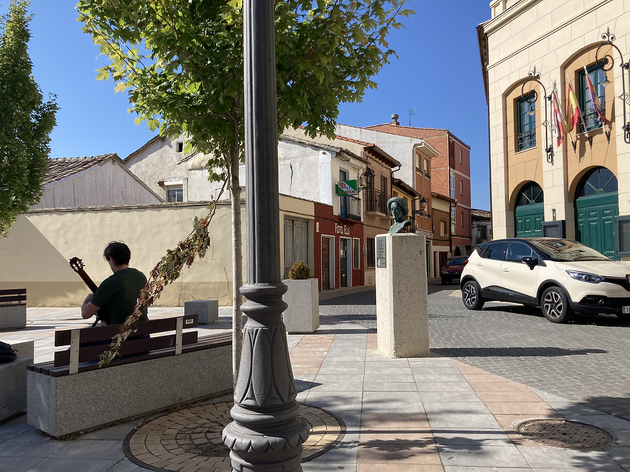플라자에 점점 가까워지고 작은 공원을 만났다. 거기에서 한 남자가 기타를 연습하고 있었다. 샘에서 물통을 채우며 잠시 귀를 기울였다. 연주는 곧잘 끊어졌으며 매끄러운 프로페셔널의 소리는 아니었으나 분명 따뜻함이 깃들어 있었다. 조심조심 정성 들인 연주에서 음악을 사랑하는 마음이 들려왔다.