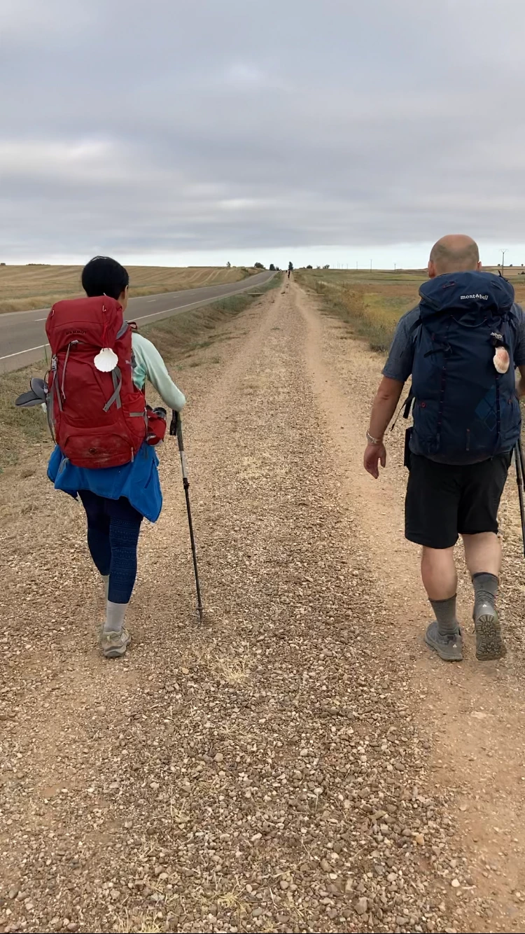 일본에서 온 아사코 - 마사키 부부다. 일 년에 한 번와서 3-4일 정도 걷고 일본으로 돌아간다. 2018년에 시작한 까미노인데 올해는 부르고스에서 사아군까지 걸을 계획이라 했다. 언젠가는 산티아고를 밟을 수 있을 거야’라고 말해주니 매우 좋아했다. 가리비가 새것처럼 보인다고 했더니 처음 것은 잃어버려 올해 새로 샀다고 한다.