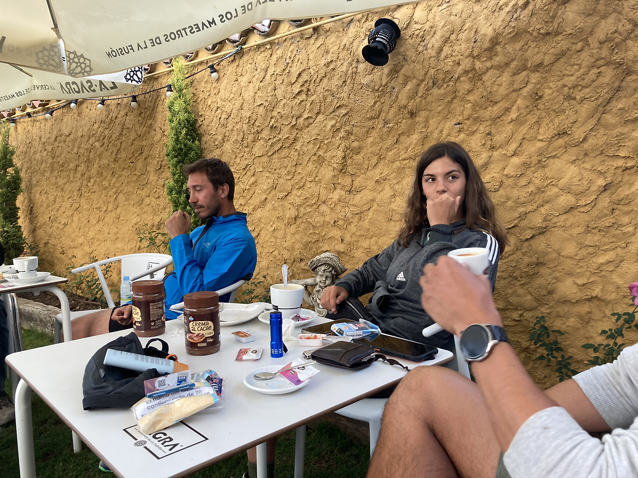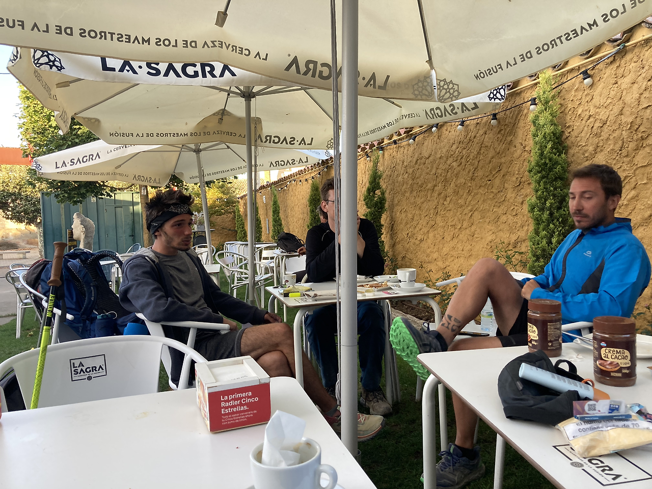 다음 마을 까페에 들러 커피를 한잔했다. 레온까지 25km 조금 안될 테니 느긋하게 쉬었다. 한 팀이 앉으면 그다음부터는 자꾸 지나가던 이들이 합류해 규모가 커진다. 한 테이블에서 시작해 급기야 테이블 네 개를 붙일 만큼 커졌다. 물론 여기의 공용어는 이탈리아어다.