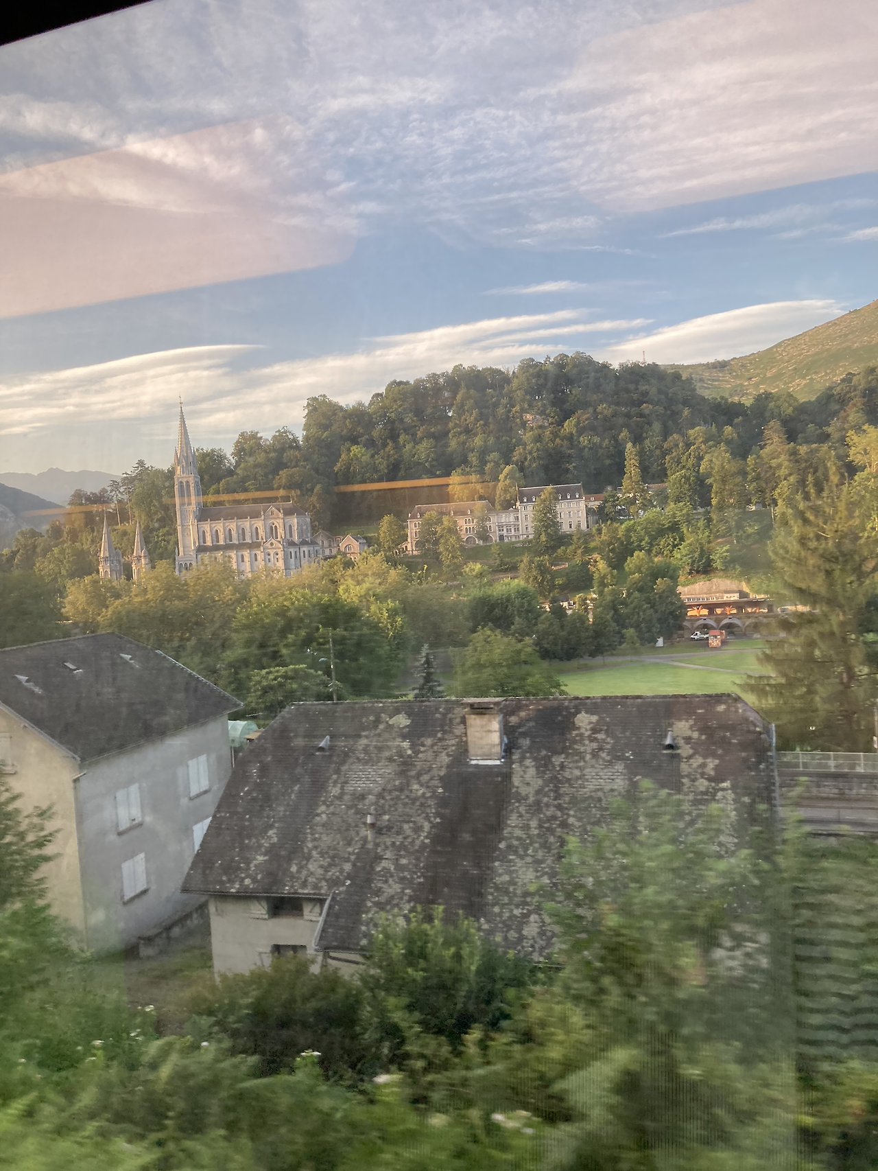 밤사이 비가 그치고 맑은 하늘이 보였다. 저기가 루르드 성당인 모양이다. 지나가며 차창밖으로만 구경했다.