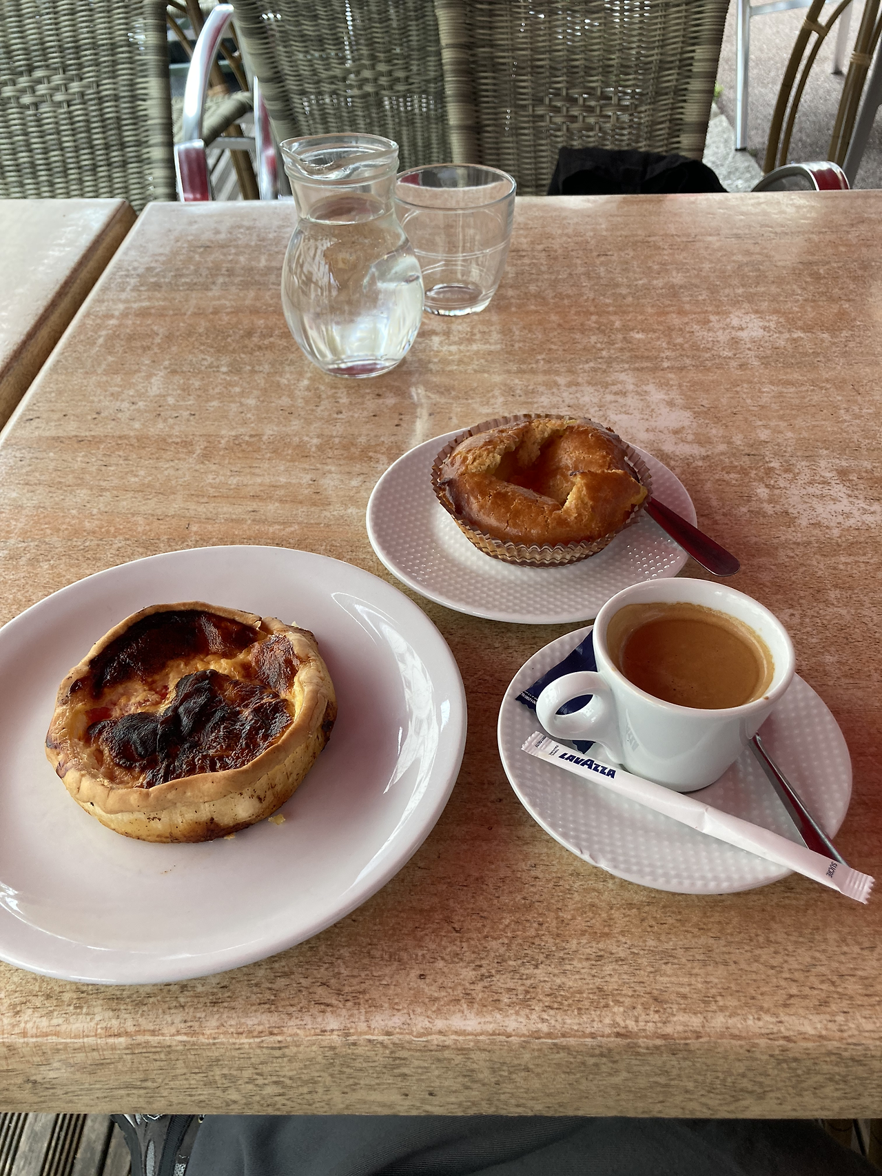 잠을 제대로 못 자 입맛이 별로 없고 커피만 자꾸 생각 났다. 카페에 들어가 햄이 들어간 퀴시와, 본고장의 갸또 바스크를 주문했다. 갸또가 프랑스어로 케이크라는 뜻인데, 갸또 바스크는 이 지역 특유의 치즈를 넣고 바삭하게 구운 케이크이다.