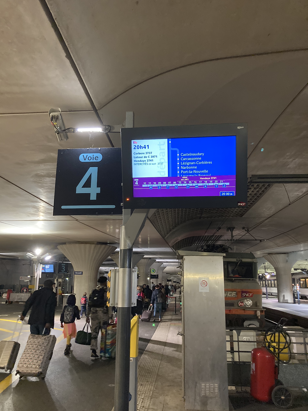 22:10에 오를레앙을 지나고 나면 밤새 정차역 없이 달린다. 7:22엔 카톨릭 성지로 알려진 루르드를 거친다.