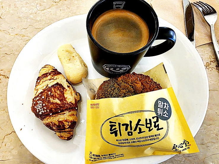 커피와 소금빵, 그리고 말차 튀김 소보로