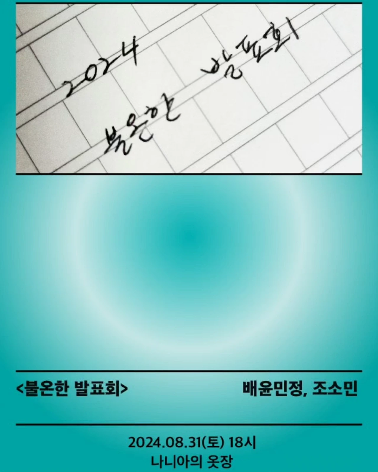 <불온한 발표회>는 출판되거나 온라인 게재되지 않은, 공연처럼 휘발되는 글을 상상한다. 올해는 두 편의 불온한 글(쓰기)을 통해 관객-독자를 만나고자 한다. 이 대화의 시간은 서로의 시선을 맞대고, 글에 들어가기 위한 복수의 입구를 찾아가는 여정이 될 것이다.