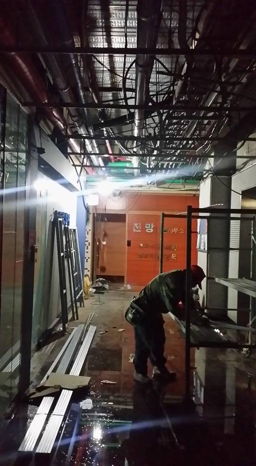 2. 소방관들의 빠른 대처로 9층까지 불이 번지지는 않았지만, 9층 사무실은 물폭탄을 맞아서 인테리어를 새로 해야 했다. 물론 소송서류나 책 같은 종이류는 다 버려야 했고, 전기로 작동하는 집기는 다 고장 났다. 빗자루 같은 거는 말려서 다시 사용할 수 있었다.