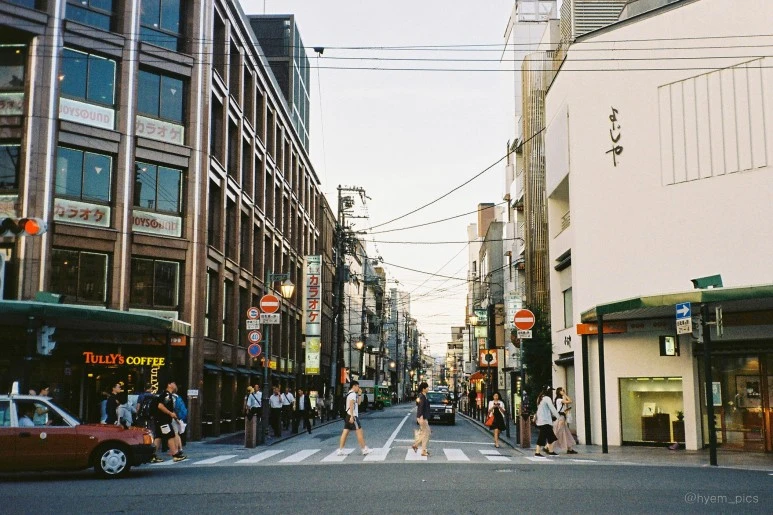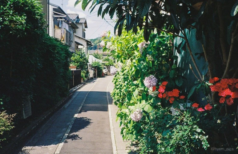 교토는 사람이 정말 많은 도시였지만 관광지에서 조금만 벗어나면 조용한 골목을 마주할 수 있었다. 수국을 말리는 따가운 햇살과 작은 2층 건물들이 만드는 그림자가 넘실거리는 골목은 무척 평화로웠다.