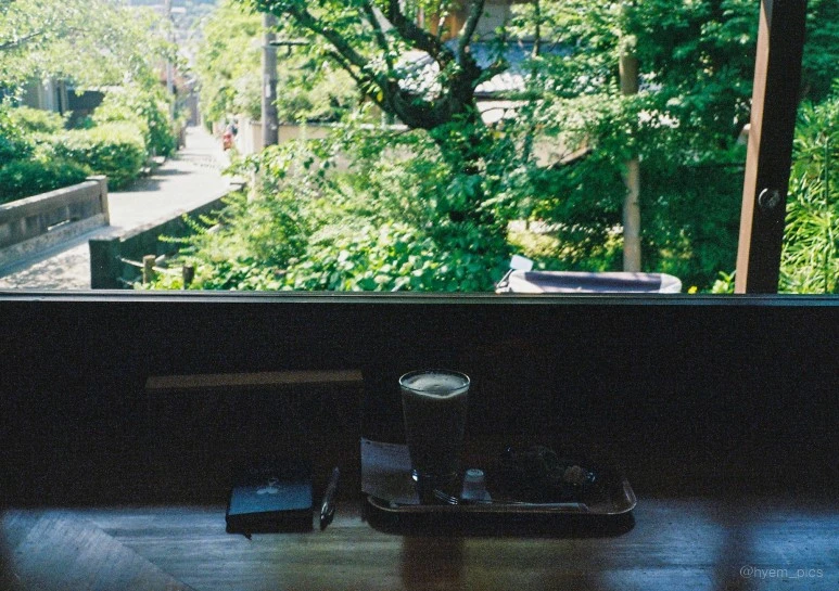 카페는 작았다. 개인 주택을 카페로 활용하는 느낌이었는데 창 쪽 공간과 부억으로 연결되는 거실이 전부였다. 거실에 놓인 테이블에는 동네 주민으로 보이는 아저씨 두 명이 수다를 떨고 있었다. 신발을 벗고 철학의 길을 바라보는 창 근처 다다미방에 앉았다. 창 너머로 보이는 울창한 나뭇잎과 조용한 골목사이로 내리쬐는 볕이 참 예뻤다. 별 것 아닌 풍경이었는데 별 기대없이 들어섰던 곳이라 더 좋았던 것 같기도 하다. 이번 여행을 통틀어 가장 충만하고 행복한 순간이었다.