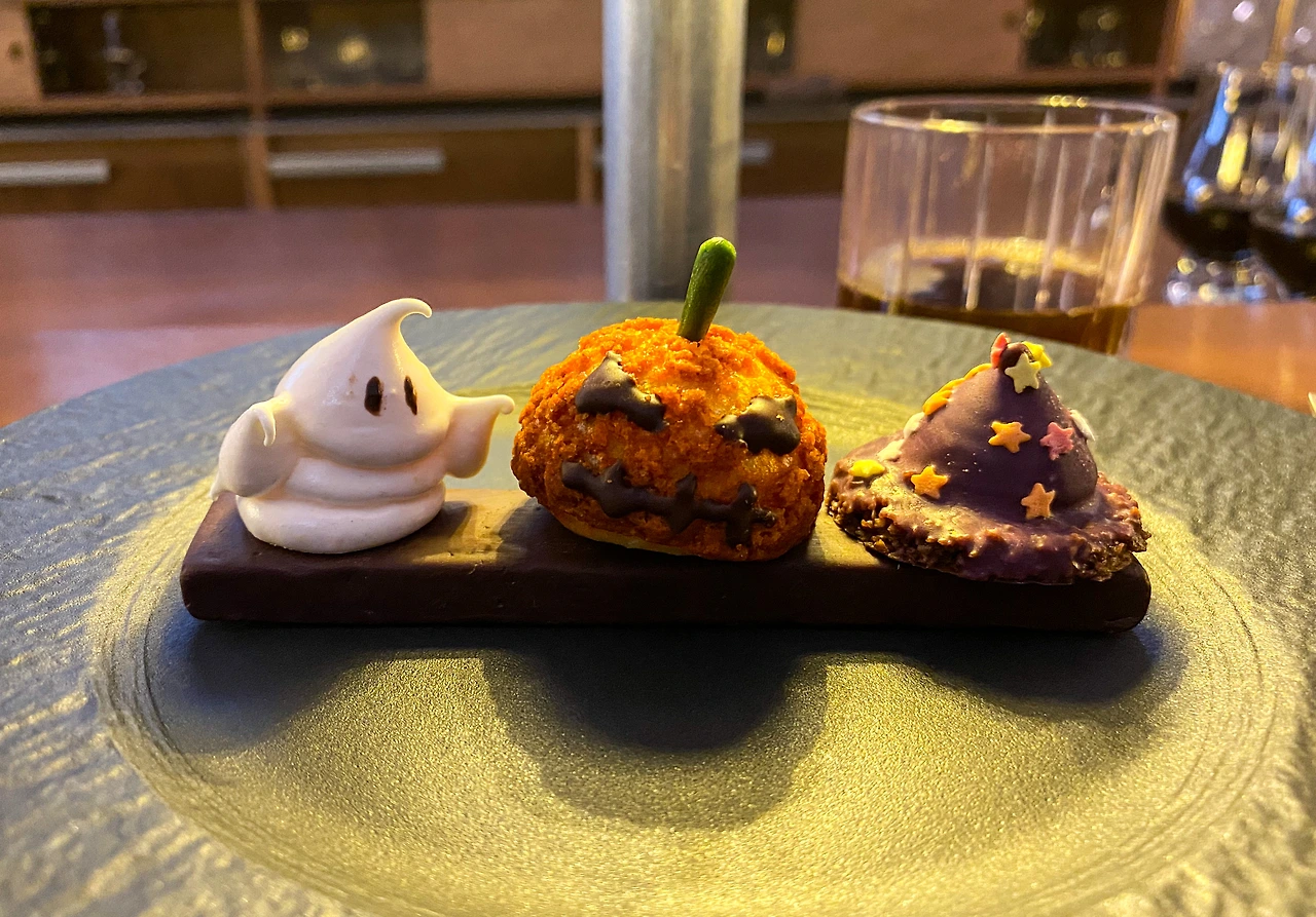 미니 디저트 3인방, 할로윈 특집으로 평소 제공되던 바질 마카롱이 없어서 아쉬워하는 분들도 있는 것 같았는데, 이 세가지도 충분히 맛있었다. 무엇보다 이 비주얼... 사랑하지 않을 수 없다. 아기자기한 모습이 사랑스럽다.