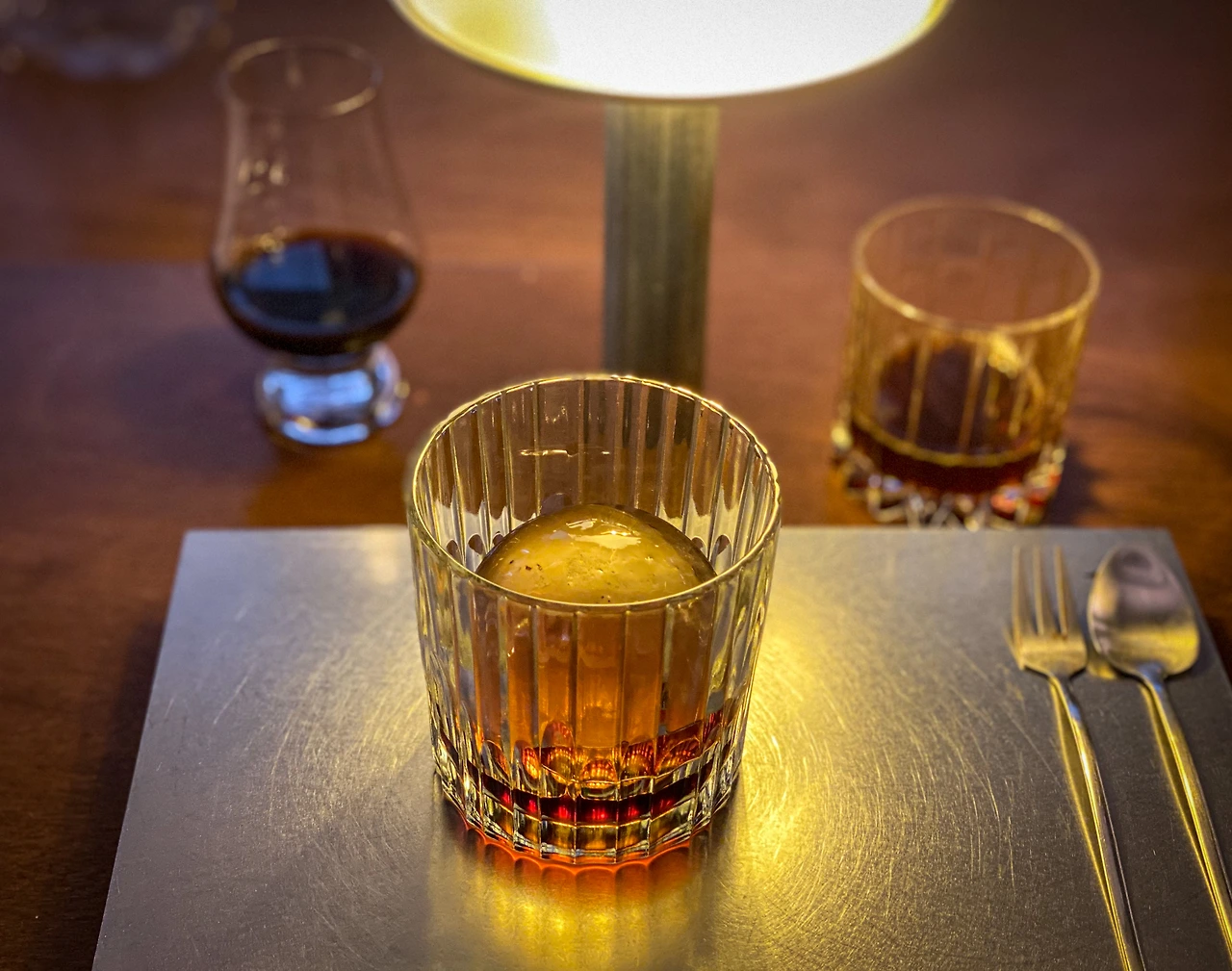 마치 위스키처럼 제공된 더치커피. 약간의 나무향이 배어 있었고, 색이나 잔 덕분에 더 바에 온듯한 기분이 들었다. 실제로 저 커다란 얼음은 천천히 녹아 음료의 맛에 덜 영향을 줘서 바에서 애용한다고-