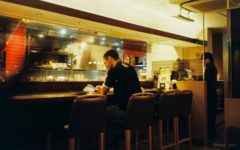 #25. 어느새 저녁 시간이 되었다. 오코노미야키가 먹고싶다. 숙소로 가는 버스를 타는 곳 앞에 오코노미야끼집이 있었다. 오코노미야키는 구워지는데 오래걸렸다. 음식을 기다리는 동안 외국인 손님이 한명 들어와 그 또한 혼자 바 테이블에 자리 잡았다. 나도 다른 사람들에게 저렇게나 외로워 보였을까? 문득 궁금해졌다.