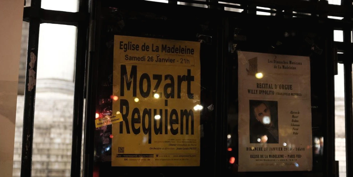파리에 눈이 왔다. 마들렌 성당 앞에서 고스란히 그 눈을 맞았다. 성당 안에서 열리는 클래식 공연의 입장을 기다리던 중이었다. 이 공연을 예매한 건 순전히 마들렌 성당 앞에 붙어있던 노란색 포스터가 나를 불렀기 때문이다. 노란색의 그 포스터는 길을 걷던 나를 그 앞에 멈춰 세웠다. 가만히 서서 내가 아는 글자들을 찬찬히 읽어 내려갔다. Mozart, Requiem. 장송곡이네. 집에 가자마자 바로 공연을 예매했다.