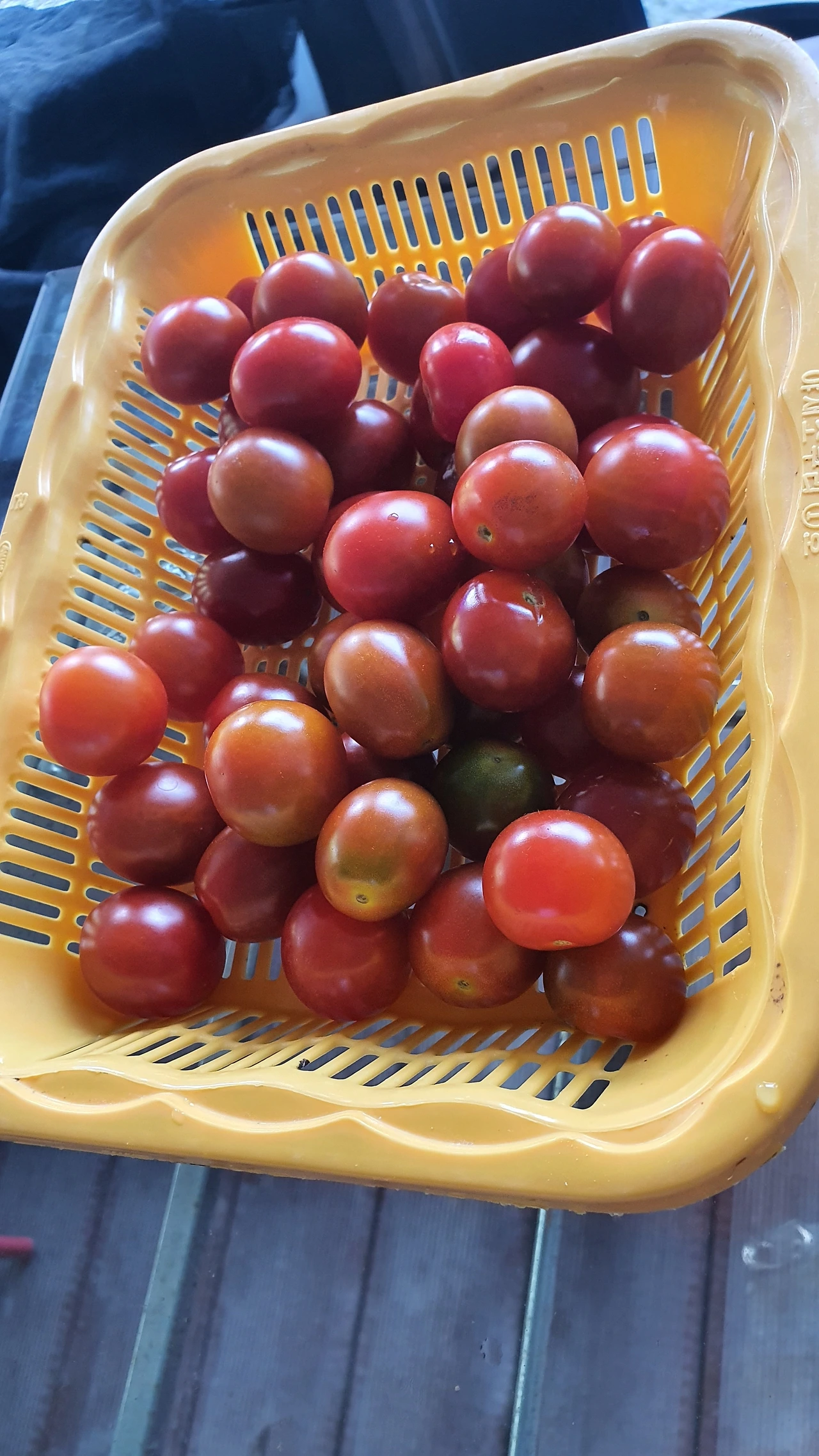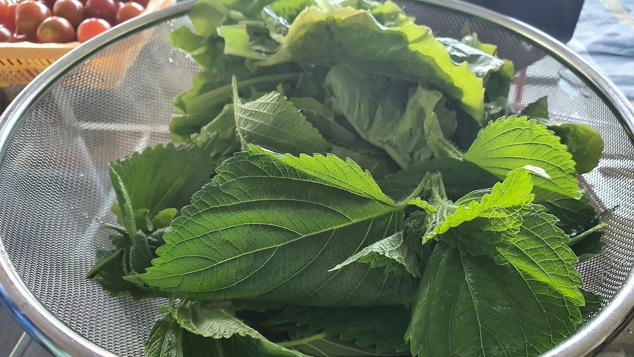 앞마당에서 상추, 깻잎, 케일 등을 따와서 씻는다. 토마토는 아침이슬 맞으며 따왔다. 토마토 킬러인 딸내미가 한참 먹고 남았다.