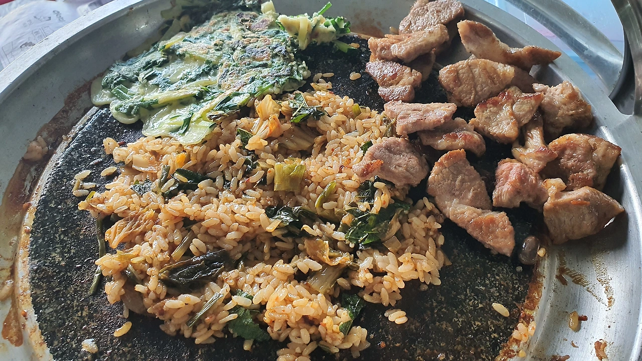 일단 돌판에 고기를 굽는다.