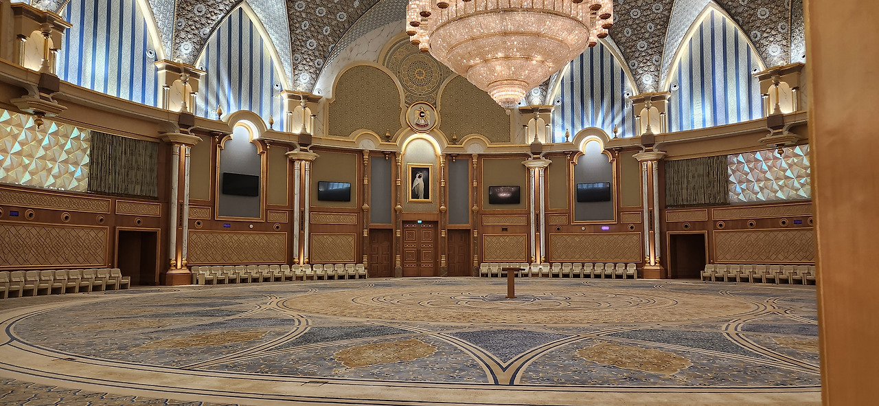 24K 순금으로 된 샹들리에는 세계에서 가장 크고, 거기에 깔린 카펫은 기네스북에 등재되어 있는데 1200명이 제작하여 2년이 소요된 역시 세계에서 가장 큰 카펫이라고 했다.
