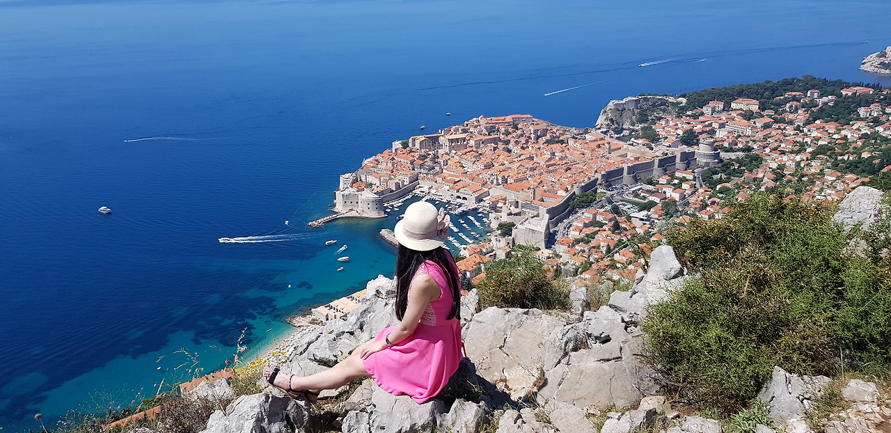 케이블카 정상보다 차를 타고 올라가는 중간에 세워준 곳이 오히려 뷰 포인트였다. 여기서 진짜 사진 최소 100장은 찍은 듯하다. 여행 전 옷 구성(?) 작업을 할 때 당연히 사진을 많이 찍을 지역에 가는 날 입는 옷을 신경 쓰는데 두브로브니크에서 입을 원피스에 많은 고심을 했다.(다시 한번 말하지만 사서 걱정 특기임). 그래서 결국 고르고 고른 것이 원래 후보지에 없던 핫핑크 원피스. 가장 큰 이유는 색감. 사람들이 무조건 원색 계열의 화려한 옷을 입으라 했다.(잘못 입으면 보호색 된다고..)그리고 계속 캐리어에 넣고 이동할 때도 구김이 적게 가는 원단.