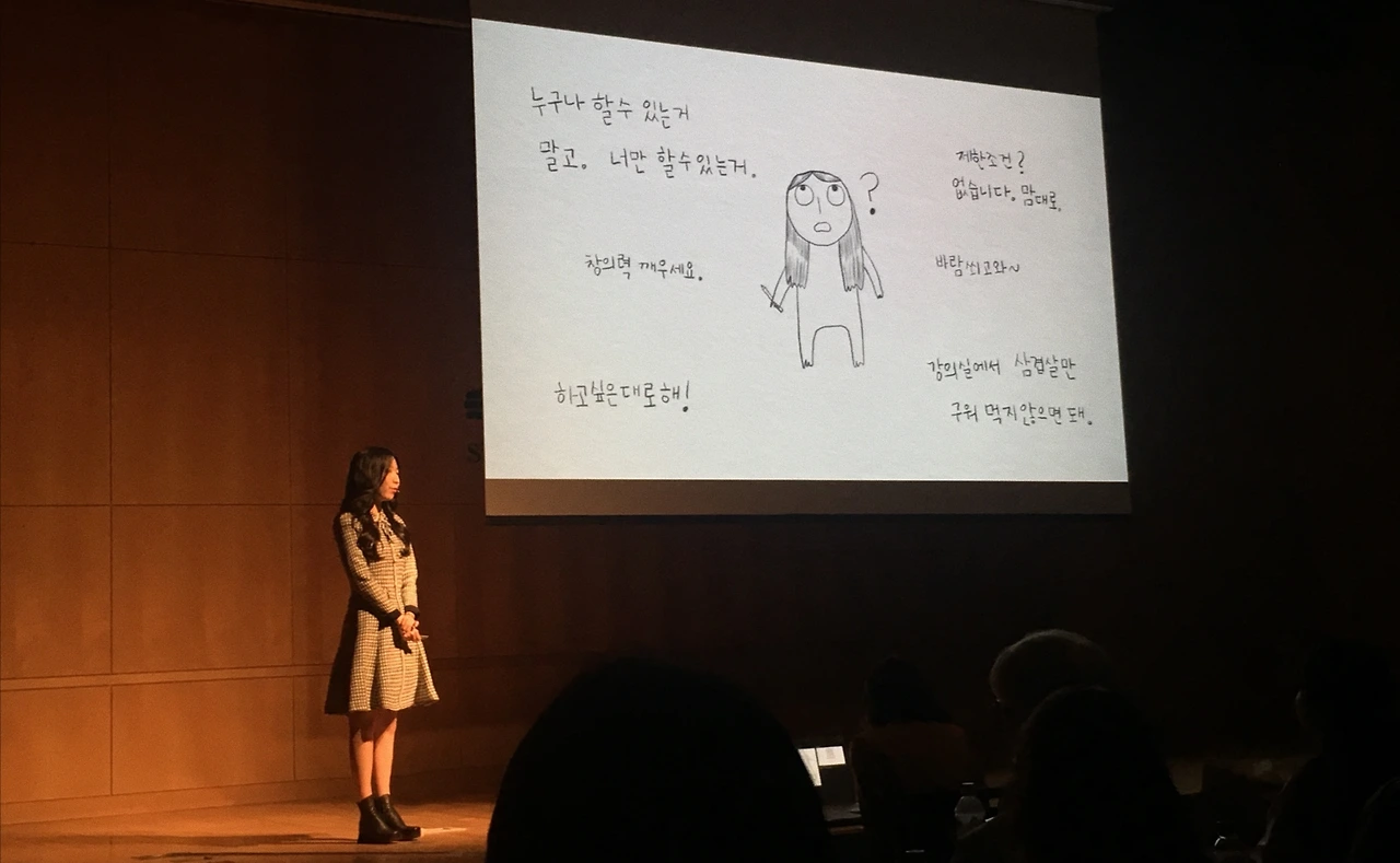 하지만 늘 들어먹지 않던 엄마의 말. 오히려 들어먹지 않아서 다행이었다. 곧이곧대로 눌러왔으면 지금의 나는 없다. 발상을 사랑하고 낙서로 기록하고 아직도 과자를 돌아다니며 먹는. 그런 내가 갑갑하고 폭력적인 유치원 교실에서 벗어나 만난 공간은 미대였다. 디자인과 전공 수업은, 특히나 우리 학교는 학생에게 좀 많이 열려있다. 열려있다는 표현도 웃기다. 학교가 학생에게 열려있는 건 당연한 건데. 그럼에도 나의 학교생활에 대해 듣던 이 대부분은 ‘와, 부럽다.’ 한다.