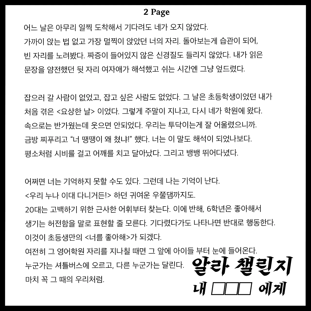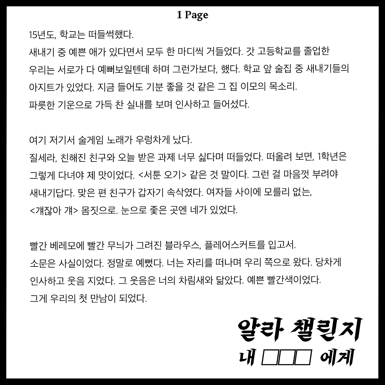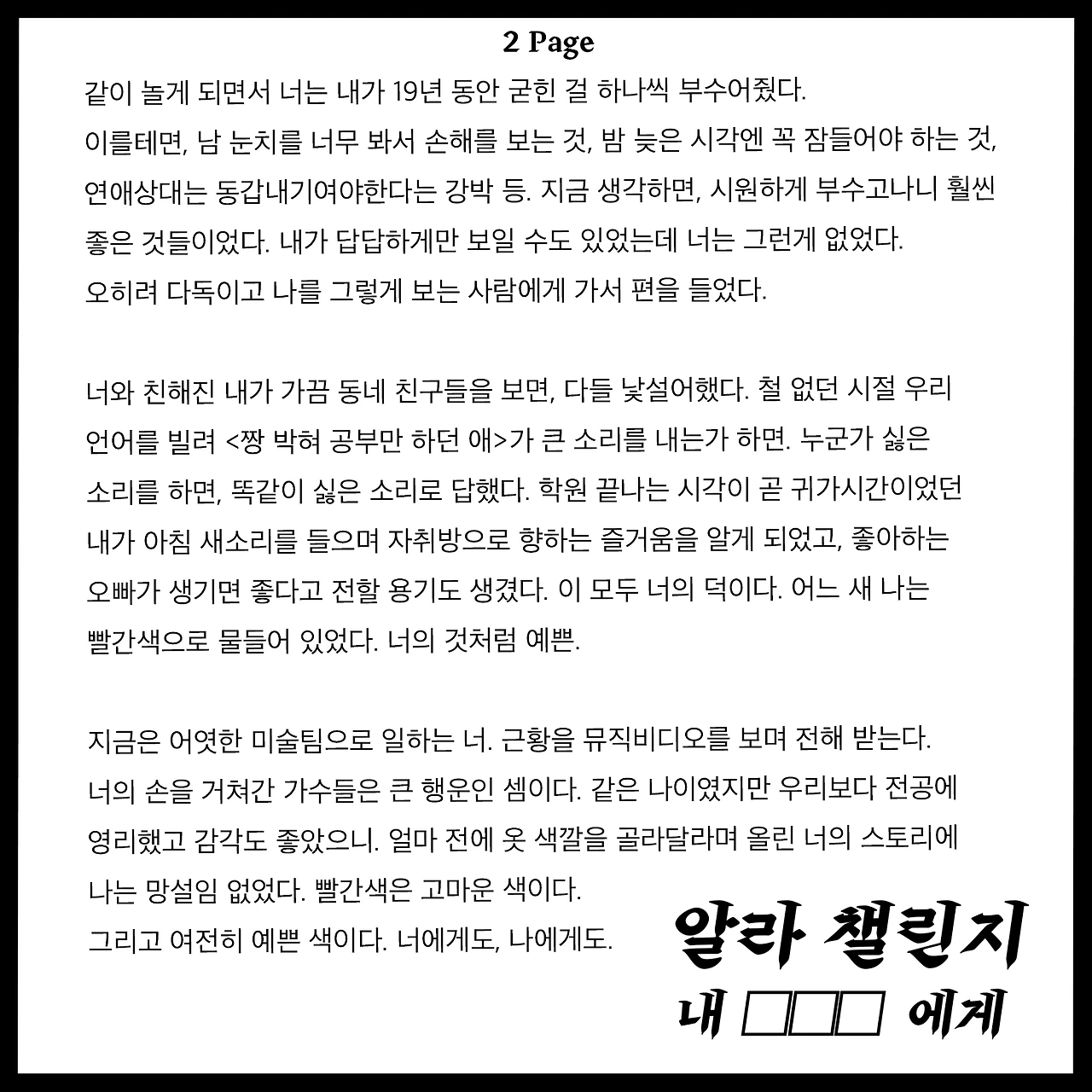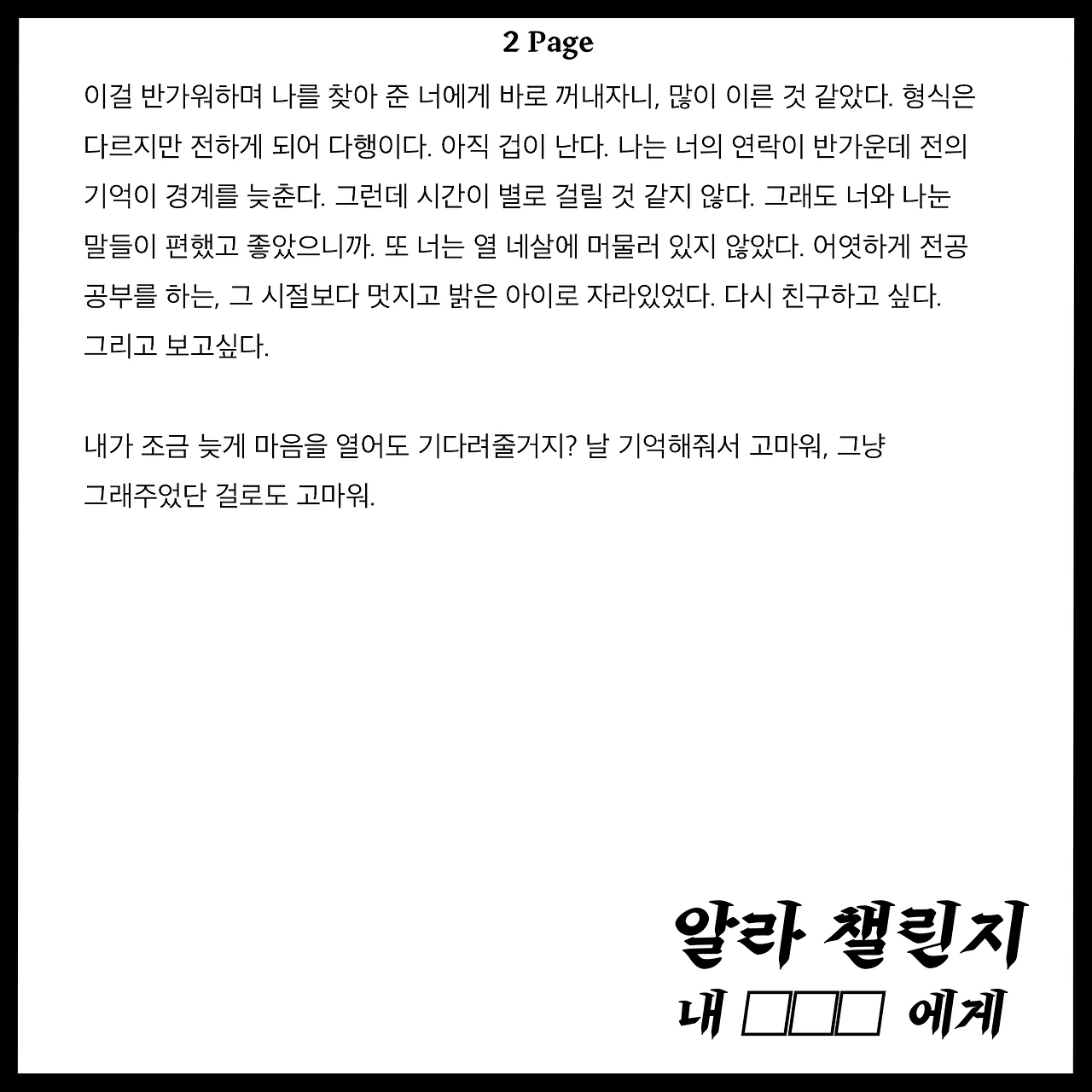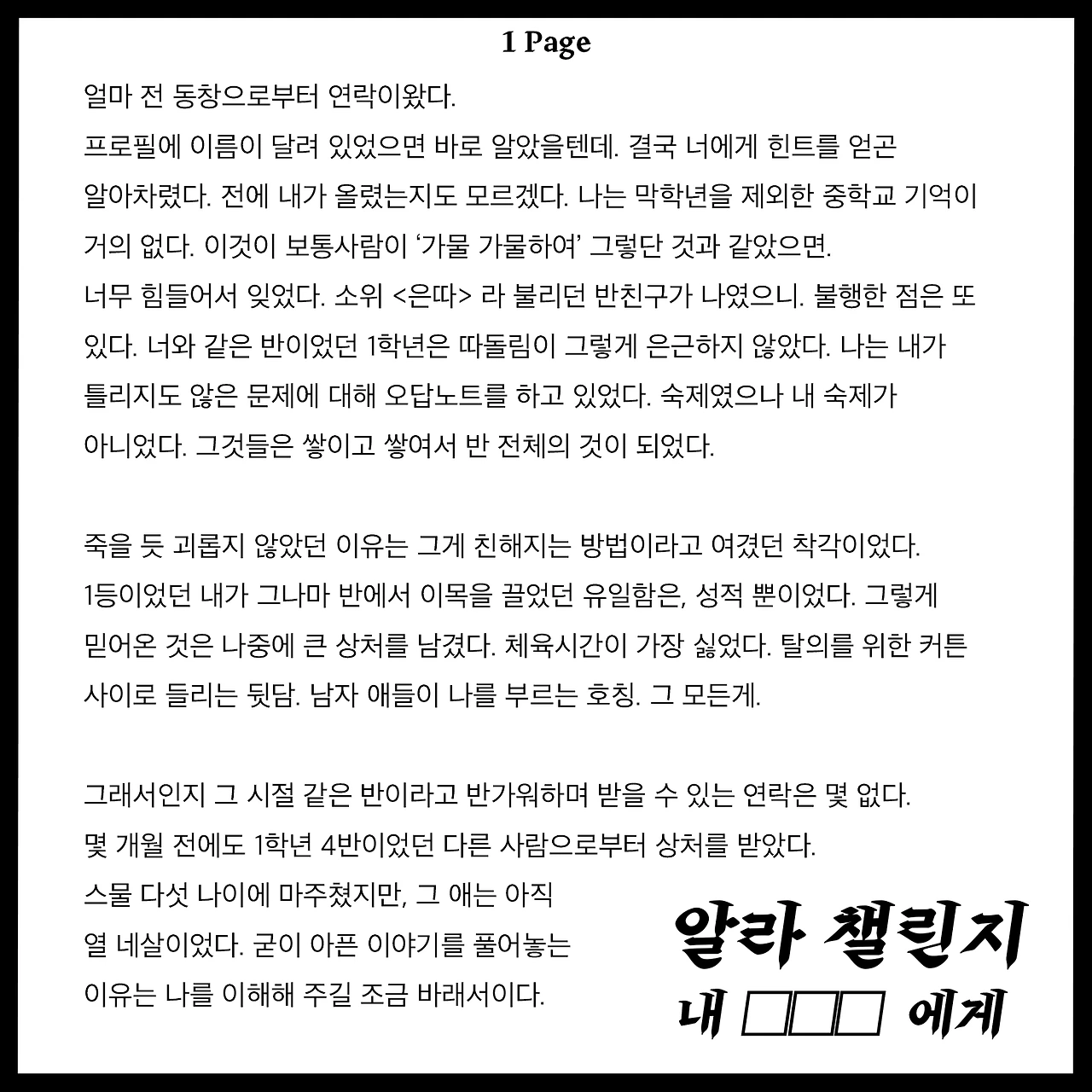 공교롭게도 이 챌린지를 하기 며칠 전 연락이 왔다. 사실 반갑게 맞았지만 온전히 반갑지만은 않았다.