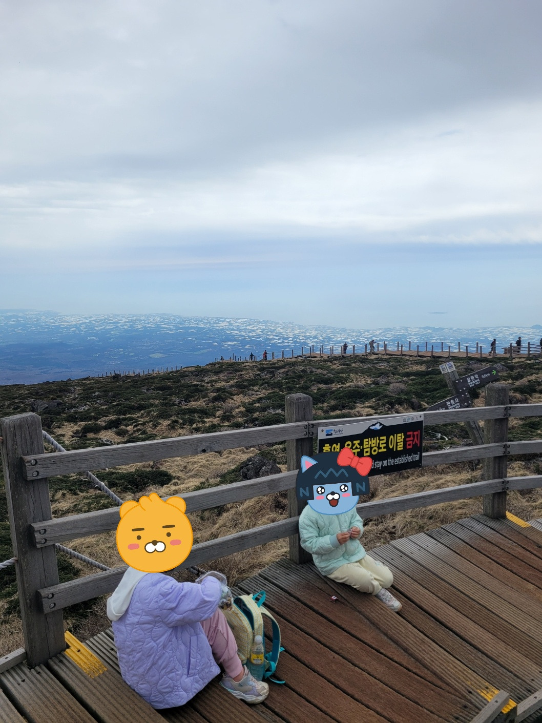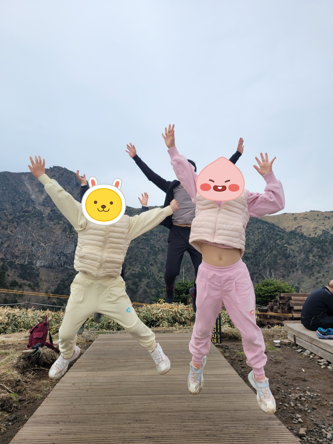 “아… 2월에 성판악 코스로 백록담까지 다녀온 적 있는 아이들이예요! 이번에도 도전하고 싶어 해서 천천히 가보려구요~”