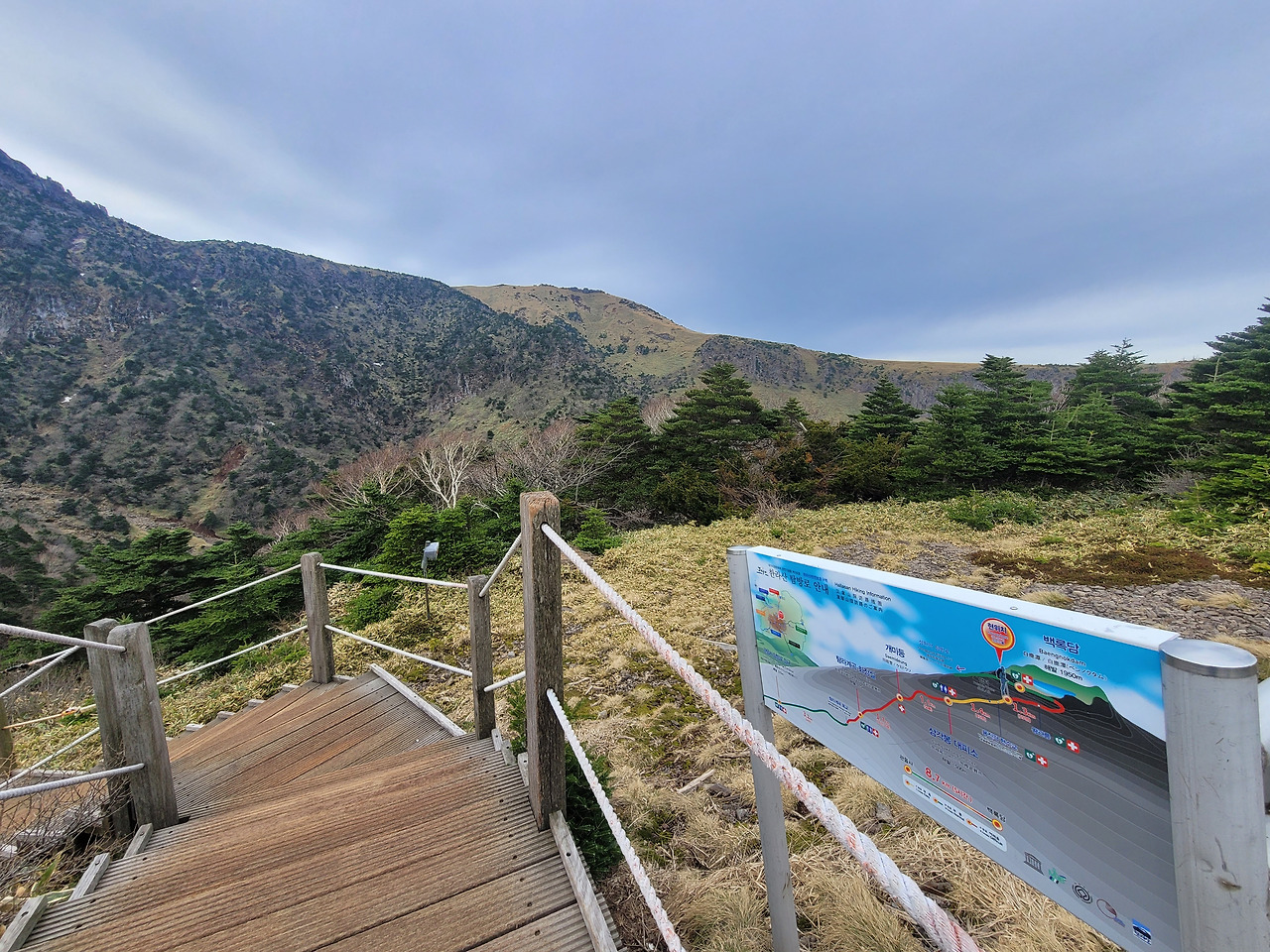 성판악 코스를 걸을 때는 눈보라가 하도 세차게 불어서 그랬나, 새하얀 눈 외에는 볼 수 있는 풍경이 매우 제한적이었다. 이번에는 코스가 달라서 그런가, 계절이 달라서 그런가, 더 넓은 시야로 한라산의 여러 풍경을 눈에 담을 수 있어 좋았다.