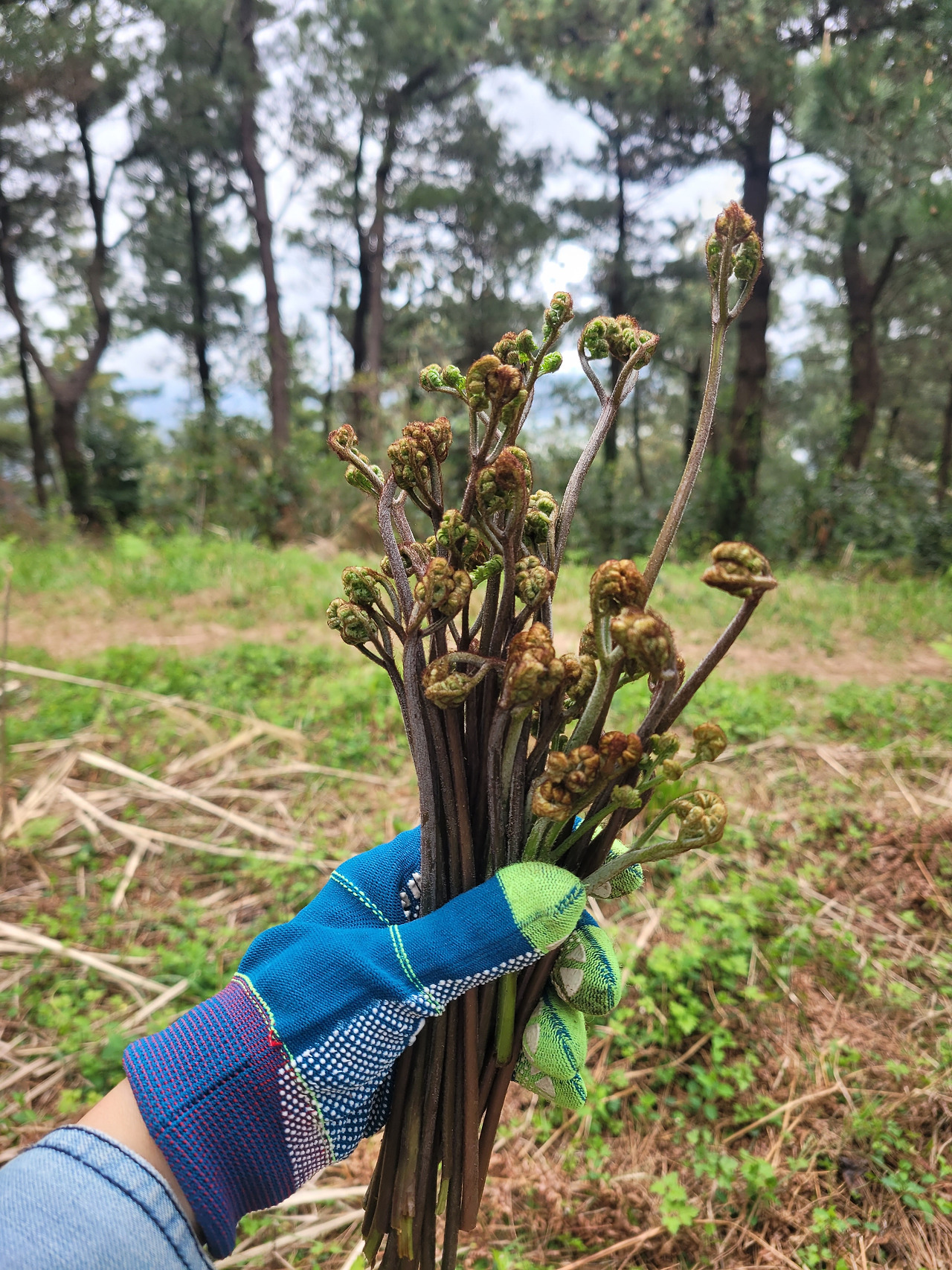 제주도 야생 고사리 채취 시기 : 기온이 20도 이상 오르는 4월 초순부터 5월 중순 사이에 이뤄짐.