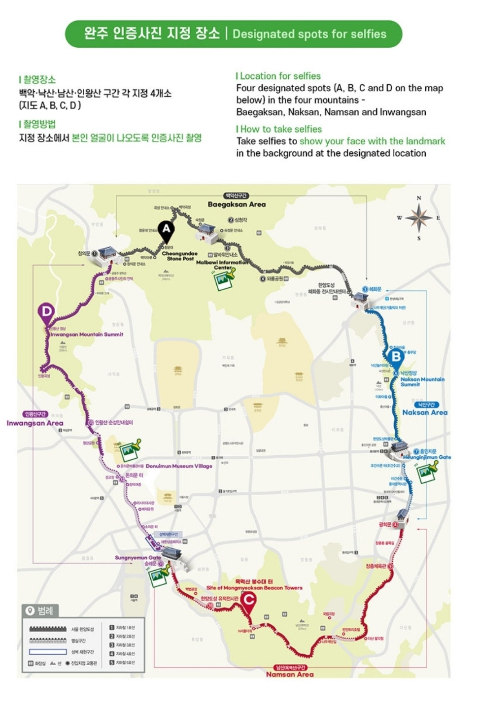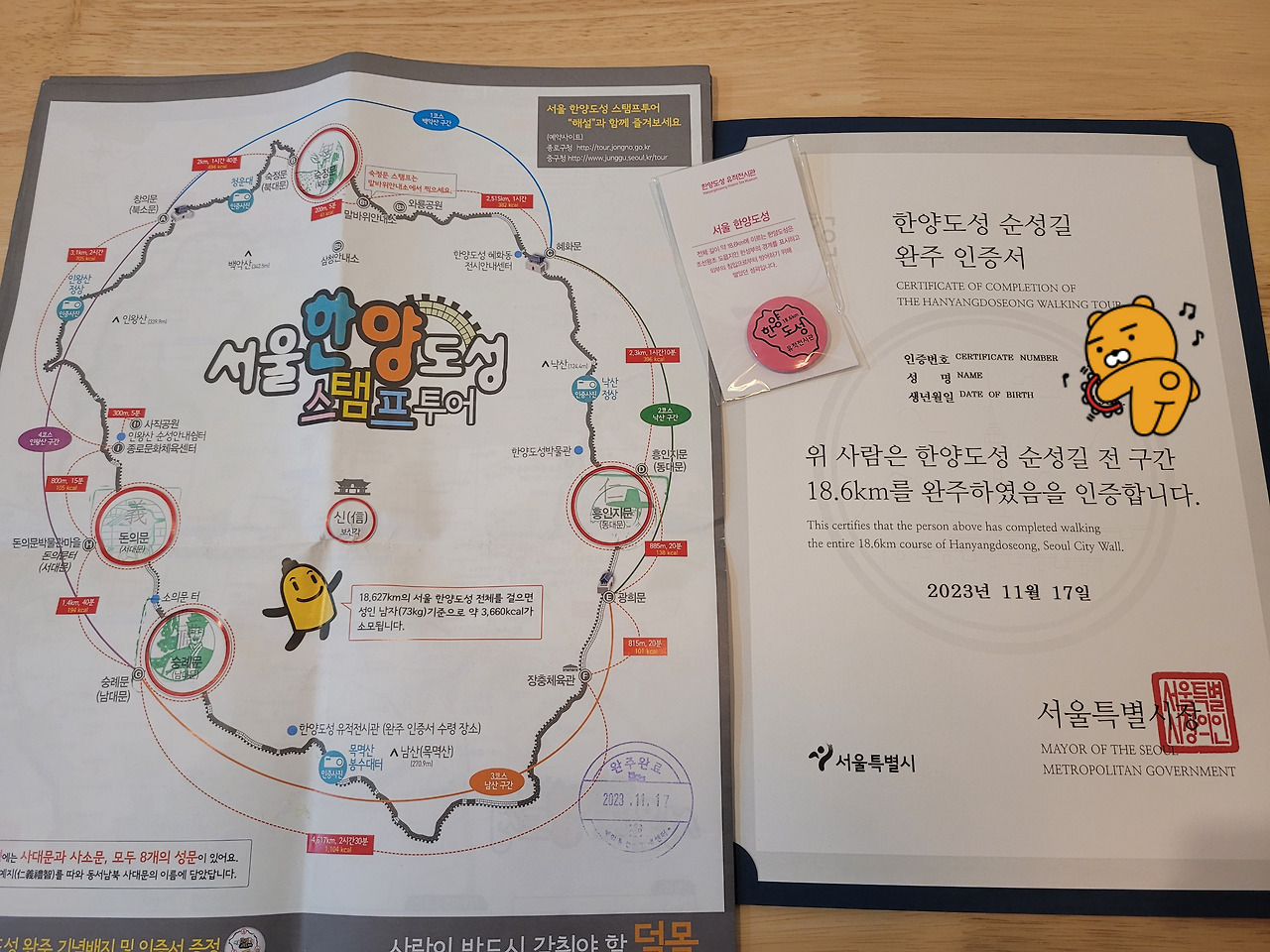서울 한양 도성 스탬프 투어 : 흥인지문, 숭례문, 돈의문 터, 숙정문을 지나는 성곽길을 걸으며 스탬프를 찍고 인증 사진을 찍어서 제출하면 <한양 도성 순성길 완주 인증서>를 발급 받을 수 있다.